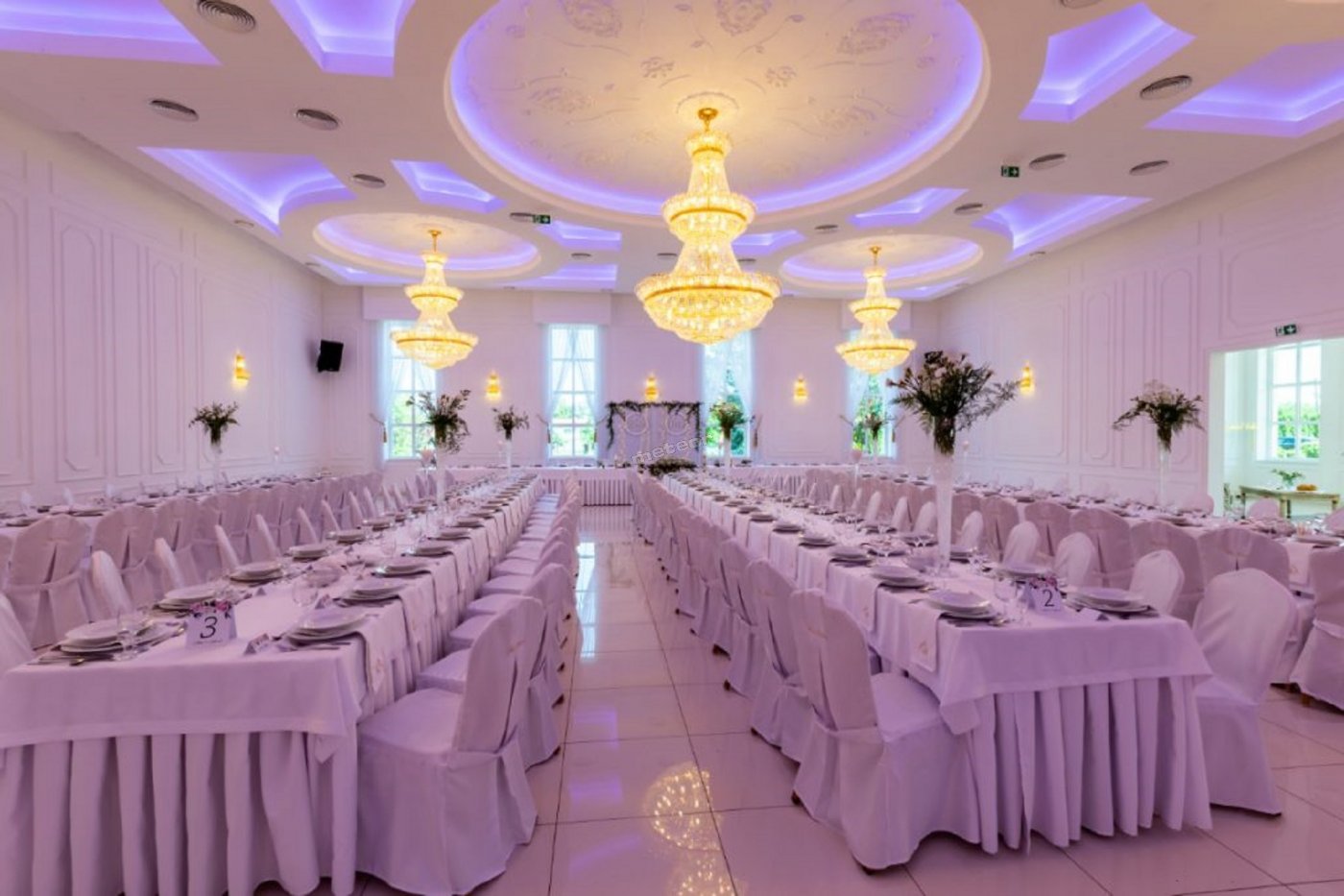 Sala Pałacowa przeznaczona jest dla 250 gości, podzielona jest na dwie sale, klimatyzowana, z oddzielnym wejściem. W sali można również indywidualnie ustawić kolor światła, polecamy wybór barwy, która będzie pasowała do motywu przewodniego całej uroczystości. W czasie przyjęcia weselnego goście również mogą korzystać ze starannie zaprojektowanego i utrzymanego ogrodu.
