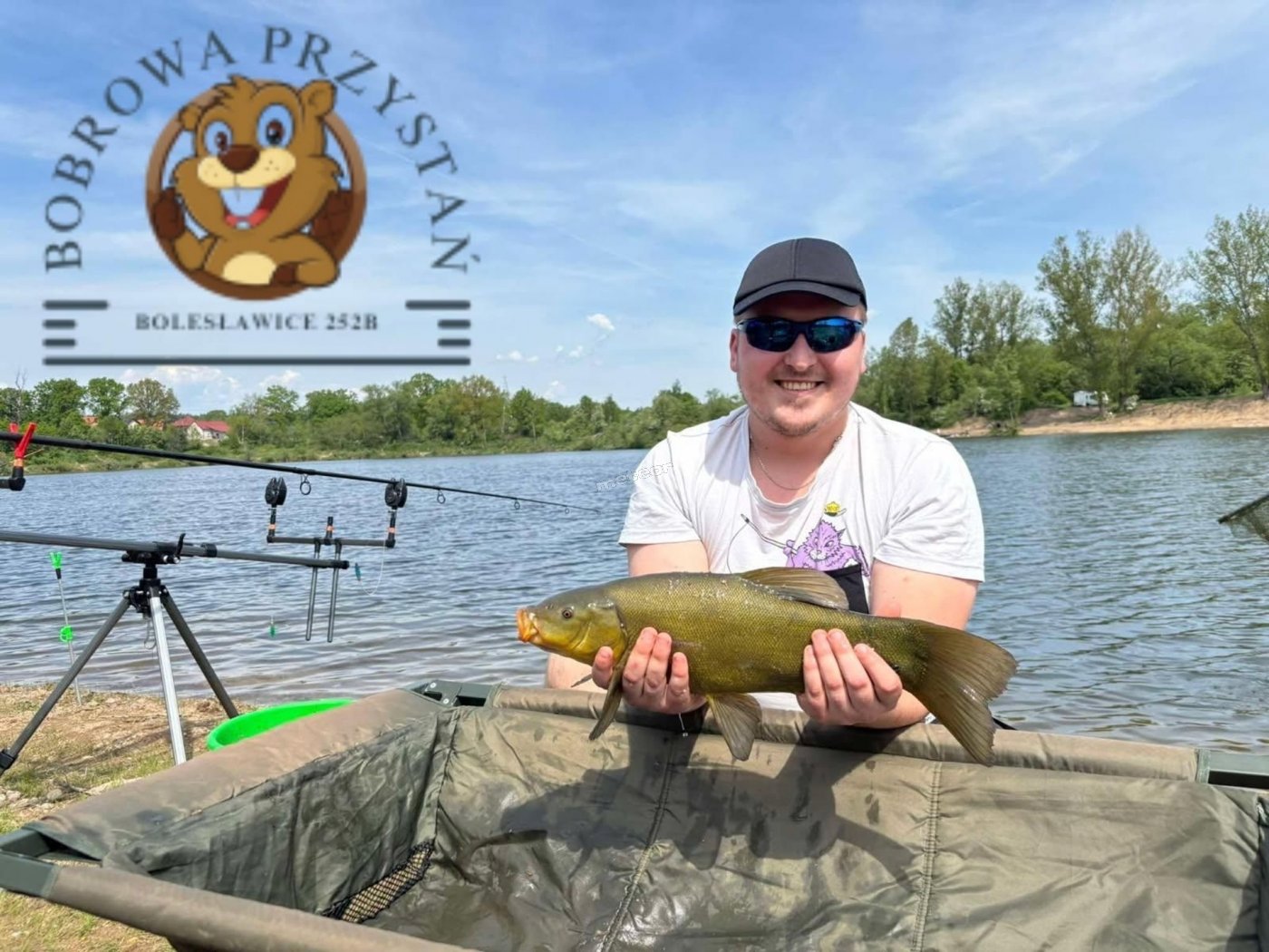 Komfortowe pokoje, widok na jezioro, możliwość wędkowania, plaża, zadowoleni wędkarze, świetna atmosfera, idealne miejsce na relaks z wędką.