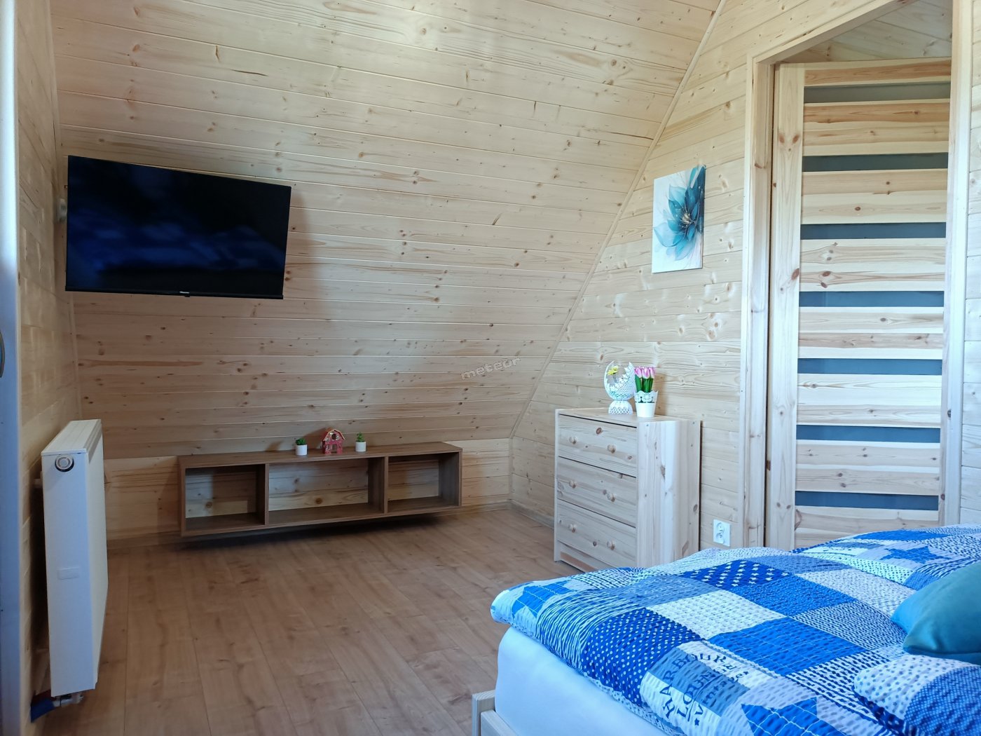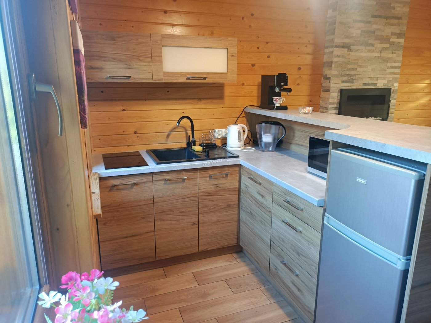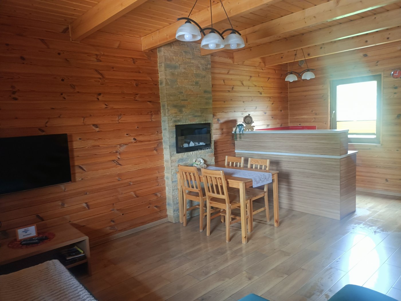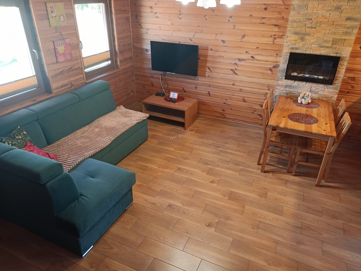Komfortowy domek w stylu góralskim, zbudowany z drewna. Jego wnętrze zapewnia bardzo dobre samopoczucie i nastrój.