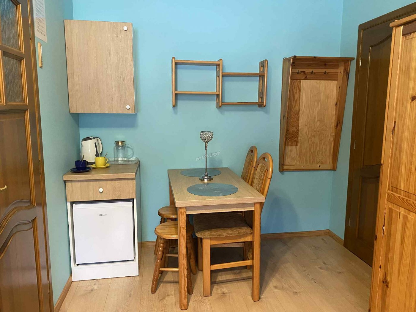 Do dyspozycji gości jest w pełni wyposażony aneks kuchenny: kuchenka, lodówka, kuchenka mikrofalowa, czajnik bezprzewodowy, naczynia, sztućce.