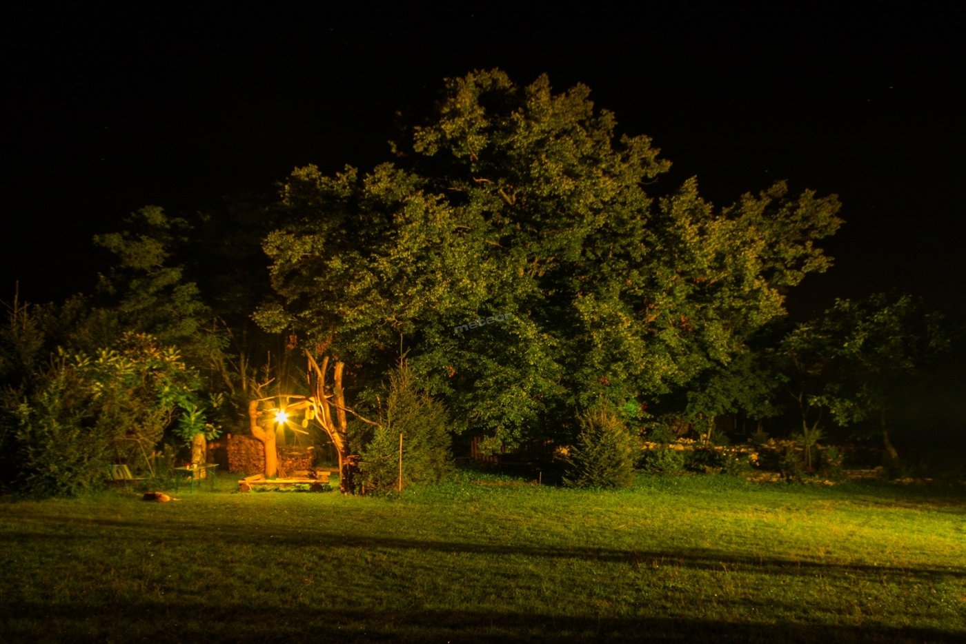Gäste können auch den Grillplatz in vollen Zügen genießen. Es erwartet Sie ein klassischer Lagerfeuerplatz sowie ein farbenfroher Unterstand, der mit seinem Design an das Innere eines alten, charmanten Häuschens mit bunten Vögeln erinnert. Schlechtes Wetter macht unseren Gästen keine Angst! Selbst bei Regen können Sie in warmer und stimmungsvoller Atmosphäre köstliche Grillwürstchen oder Ofenkartoffeln genießen.