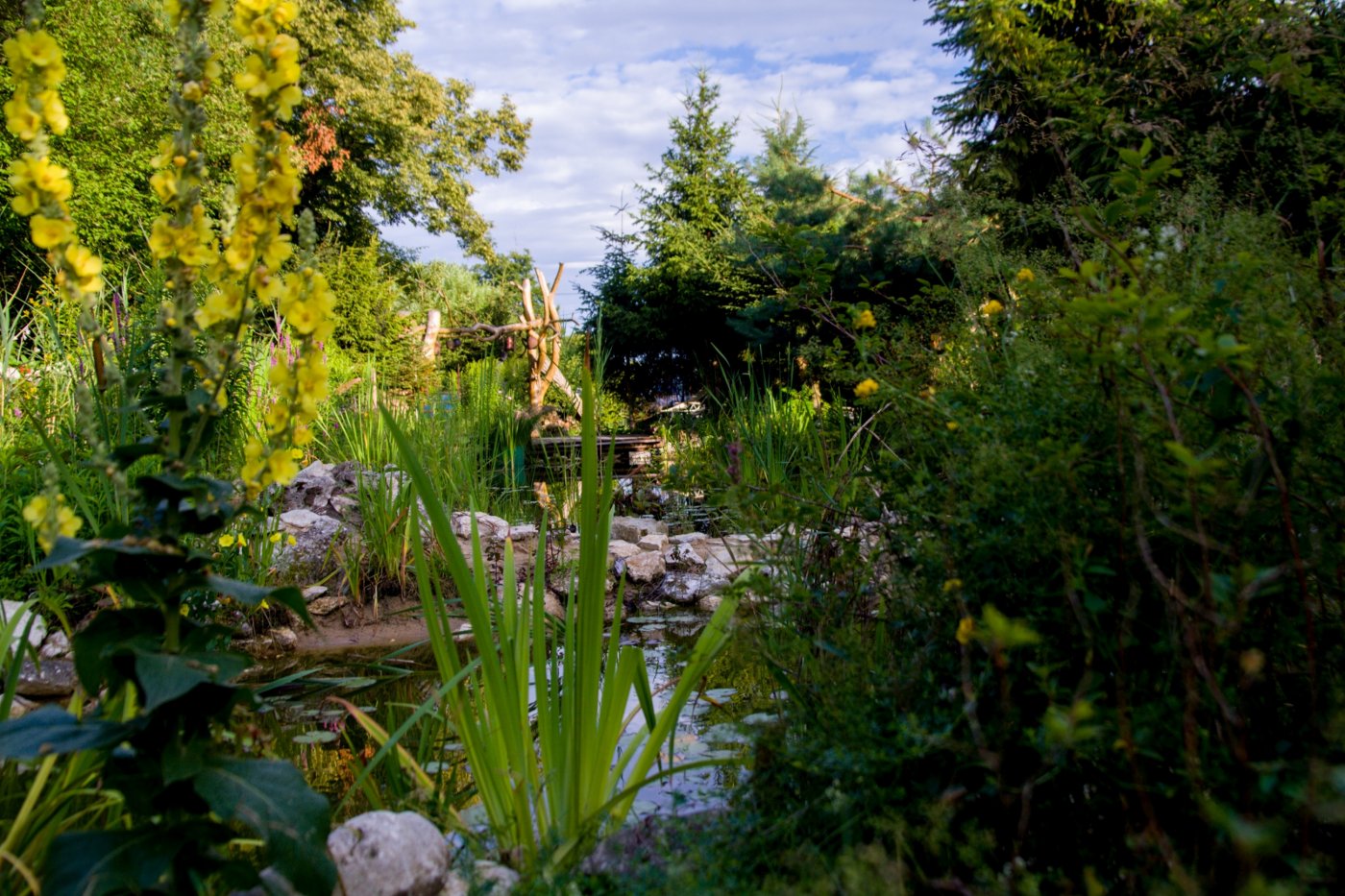 Ein Teich – hier können Sie Ihr Lieblingsbuch lesen oder im Liegestuhl Musik hören.