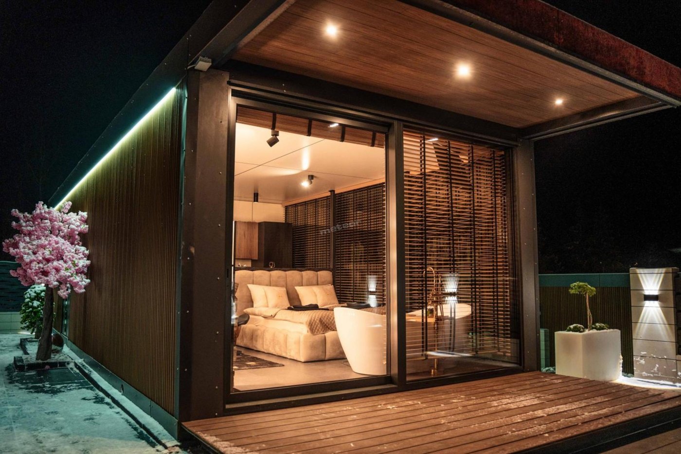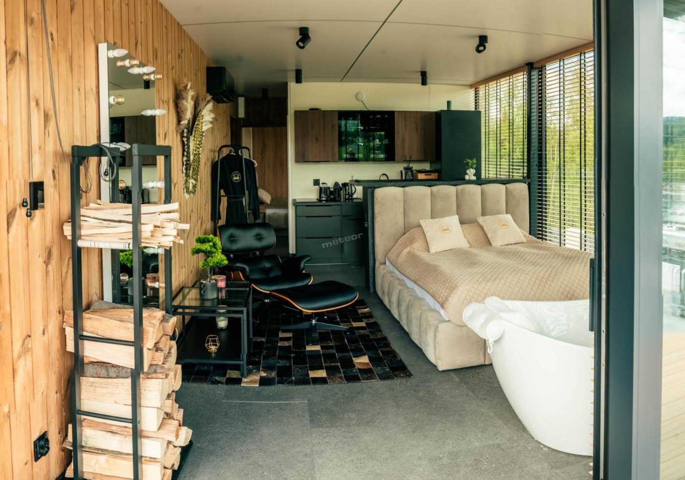 Das Zelt verfügt über: eine ausgestattete Küche, ein Badezimmer, einen Whirlpool, eine Klimaanlage, WLAN, einen Fernseher und eine Sitzecke.
