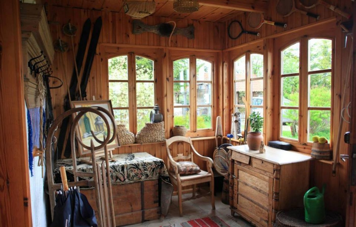 Vor dem Haus gibt es eine Veranda und eine Terrasse, eine Liegewiese, einen Spielplatz für Kinder.