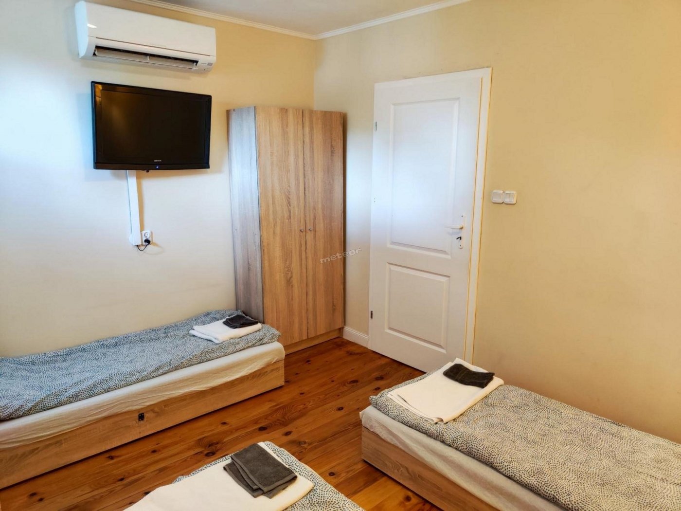 Die Wohnung besteht aus: zwei Schlafzimmern, einer voll ausgestatteten Küche (Kühlschrank, Elektroherd mit Backofen, Mikrowelle, Teller-, Topf- und Besteckset), Badezimmer, Kleiderschrank und einem Balkon mit Blick auf die Stadt.