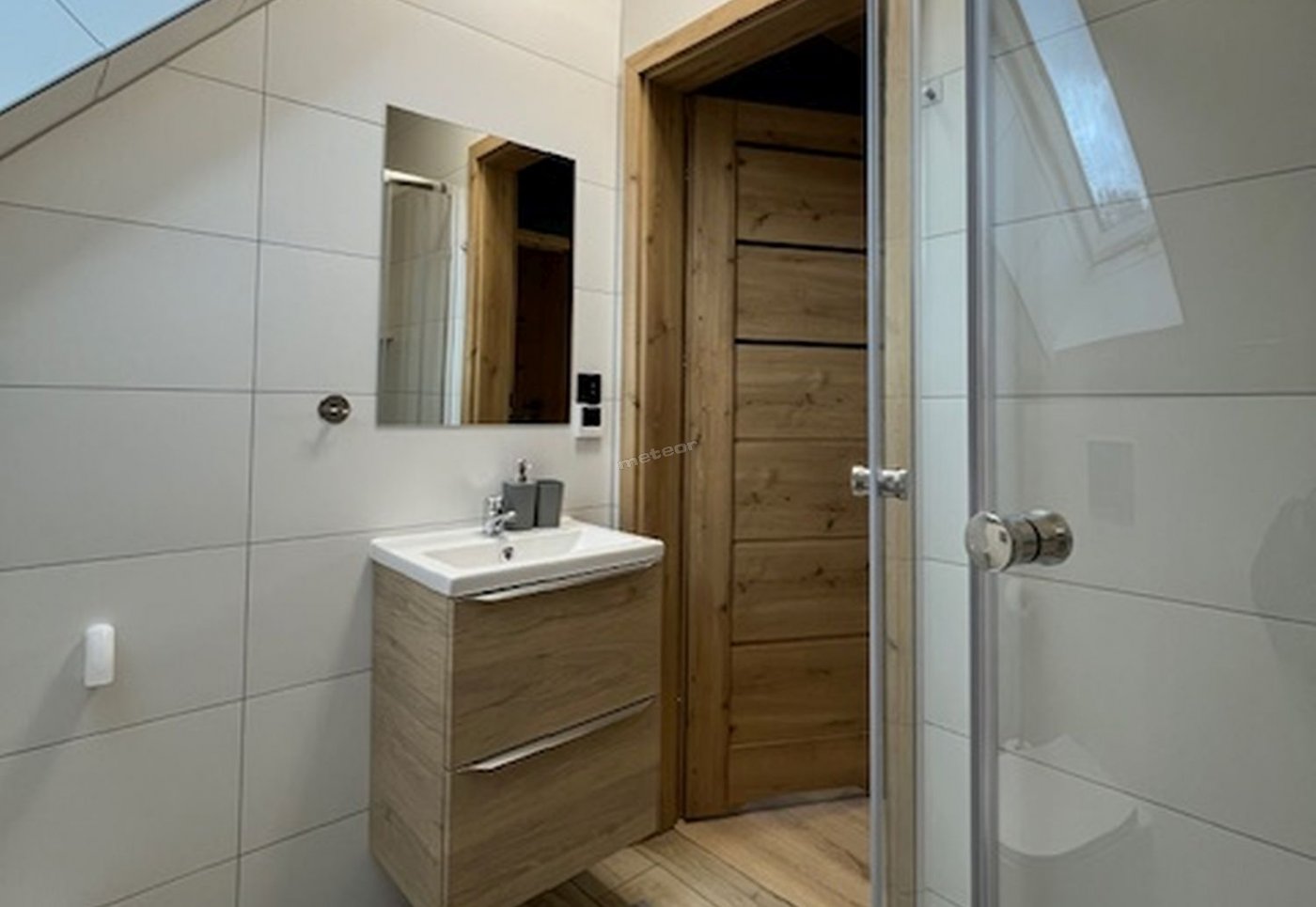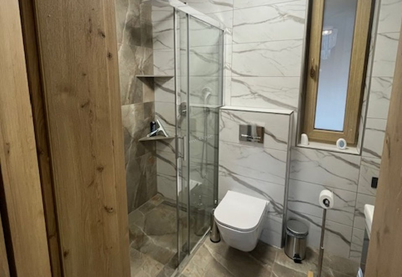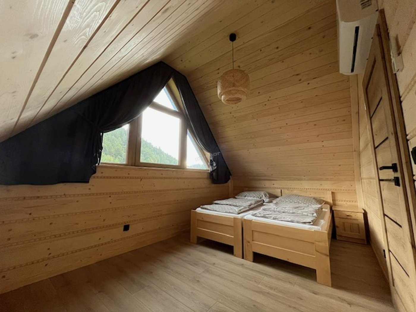 Die Zimmer mit Badezimmern, mit Blick aufs Gebirge.