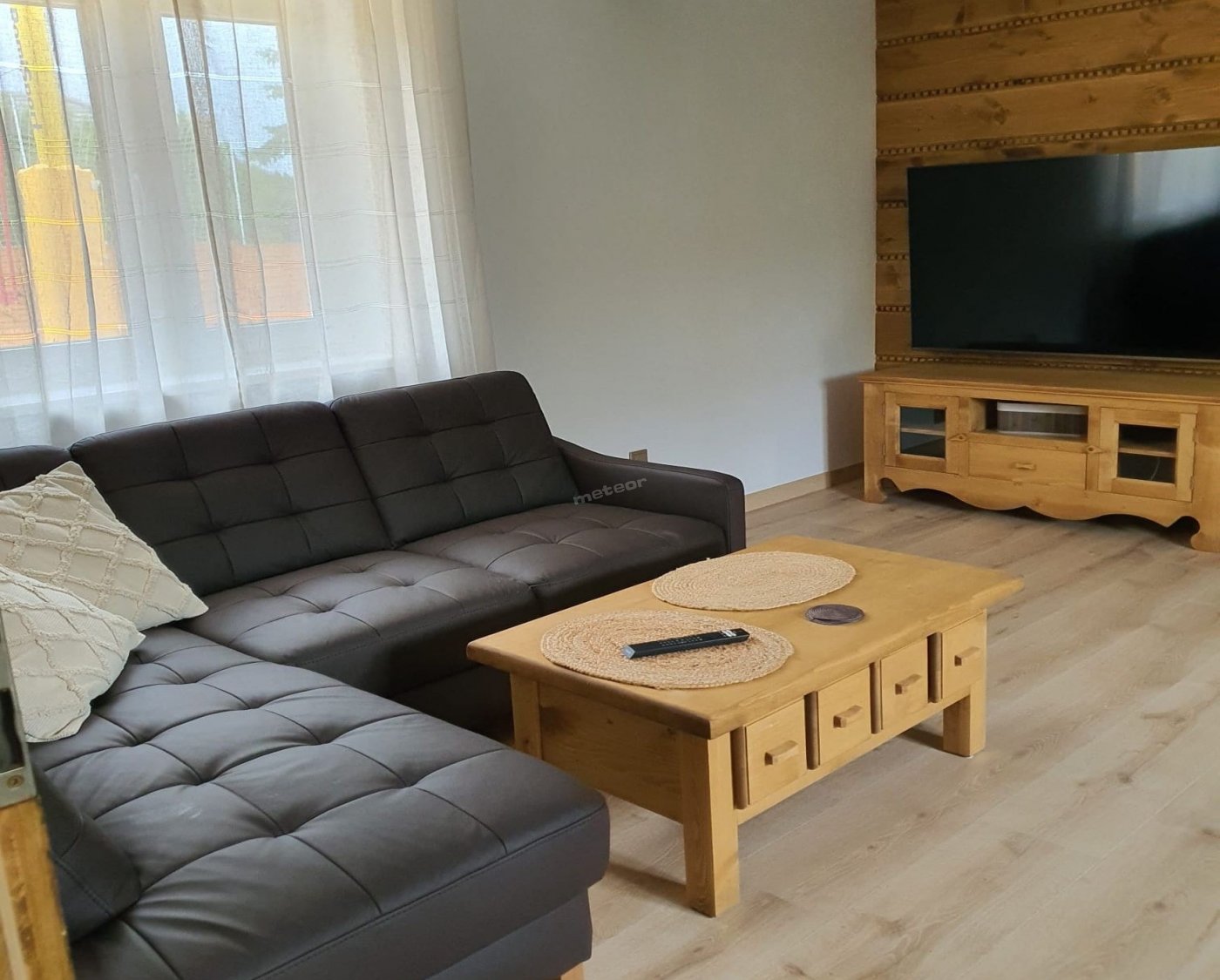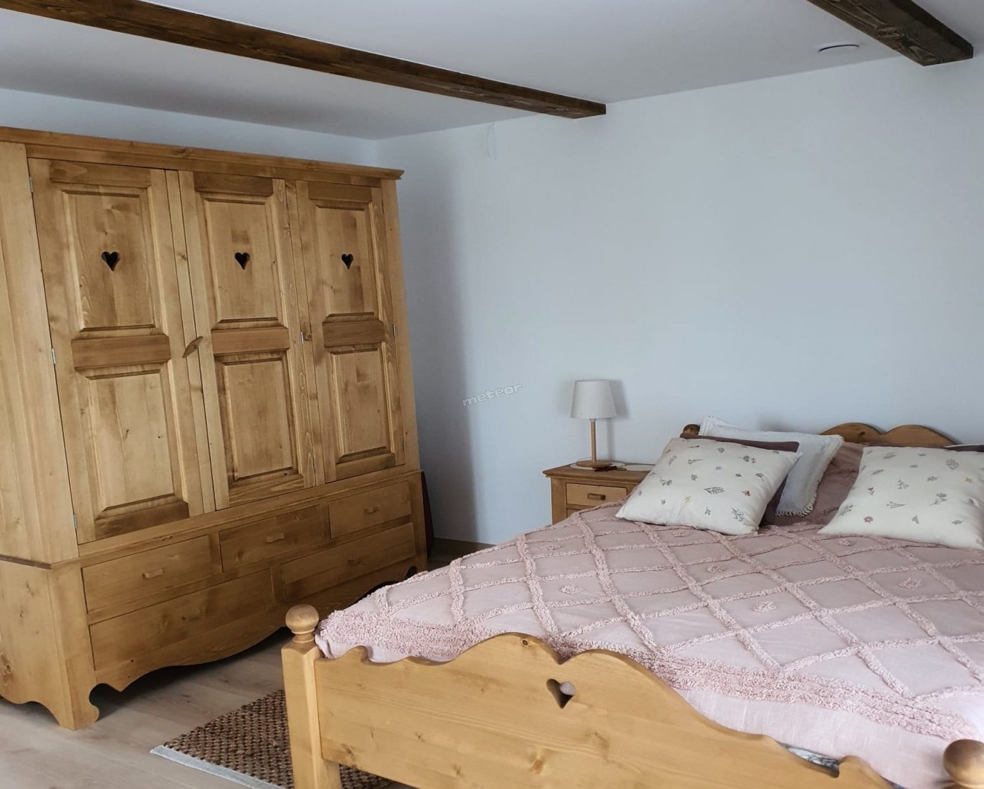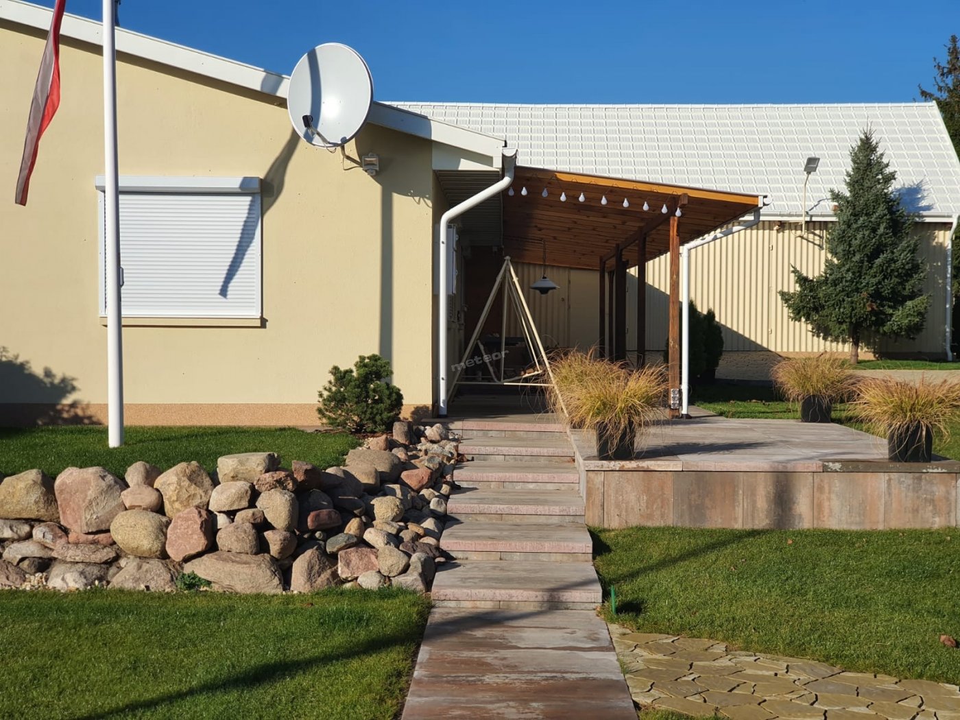 Ganzjährig, aus Holz, mit 80 m² großem Dachgeschoss und direktem Zugang zum See. Vier Zimmer, drei Schlafzimmer (zwei mit Doppelbetten, eines mit Einzelbetten), ein großes Wohnzimmer, ein ausklappbares Ecksofa, eine Kommode mit 65-Zoll-TV und eine moderne, voll ausgestattete Küchenzeile. Badezimmer, WC mit Bidet, großem Waschbecken, ebenerdiger Dusche, Haartrockner und Handtüchern. Im Dachgeschoss gibt es ein separates Badezimmer, WC mit kleinem Waschbecken. Im Außenbereich gibt es eine 25 m² große überdachte und beleuchtete Terrasse (mit ausfahrbarer Markise) mit Aussicht und direktem Zugang zum See, einen Gartentisch und Stühle aus Holz für 6 Personen, zwei Gartenliegen, einen Gasgrill und zwei Parkplätze.