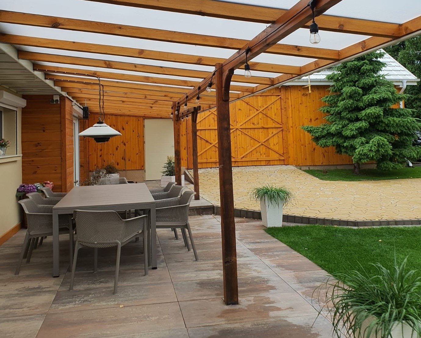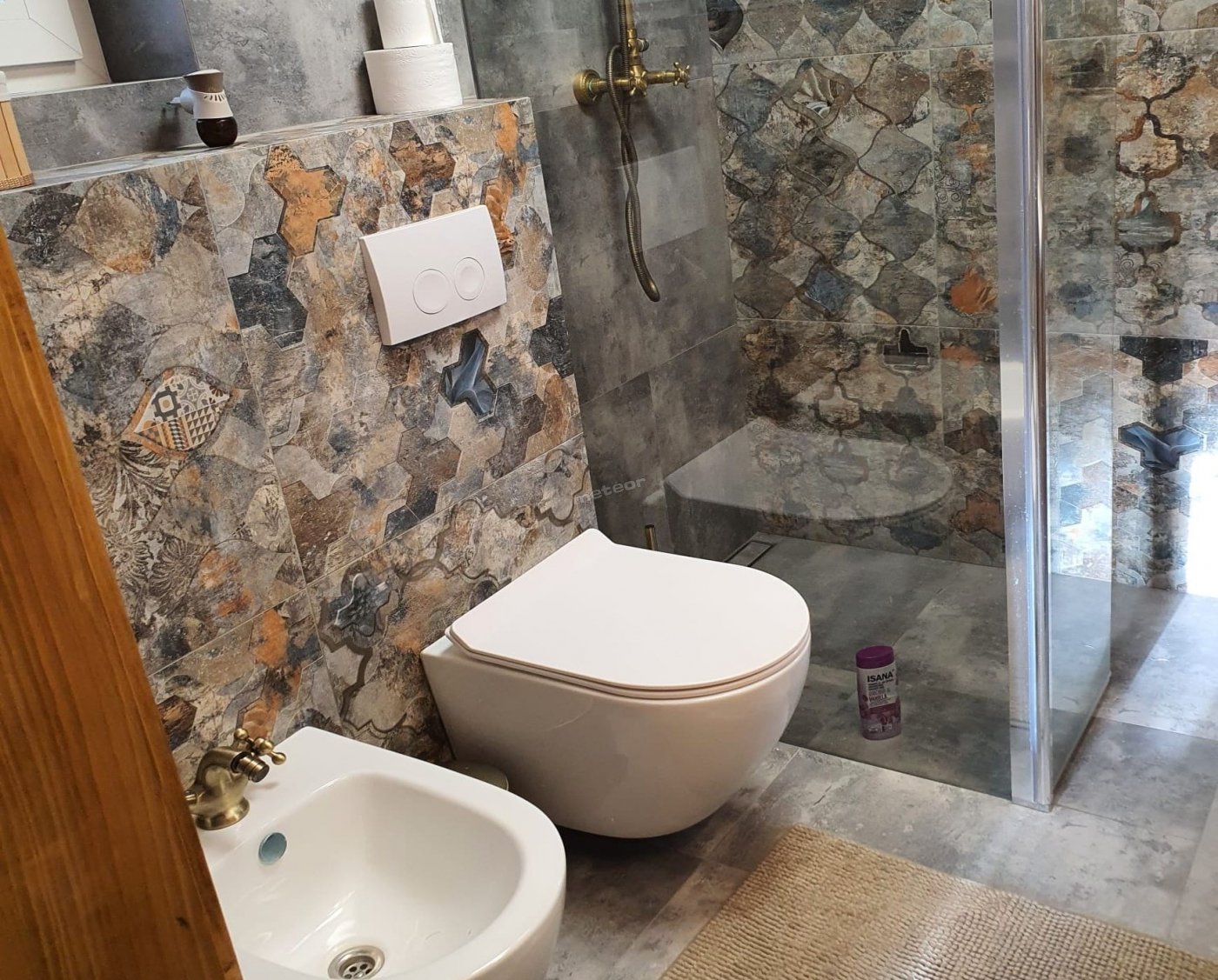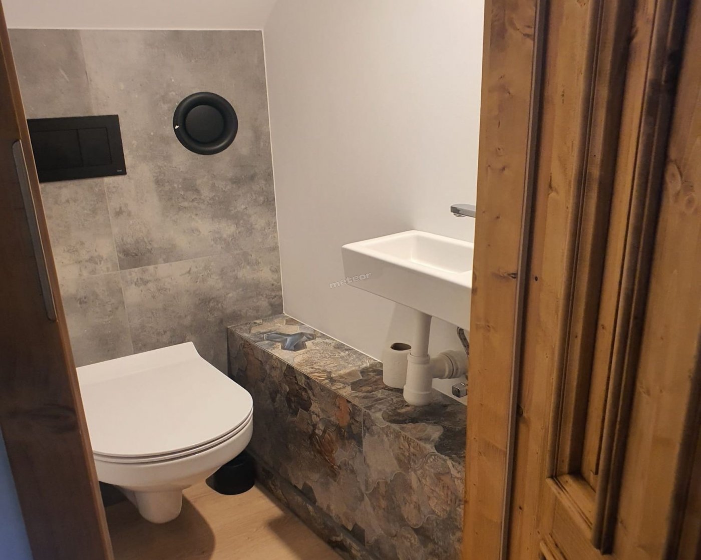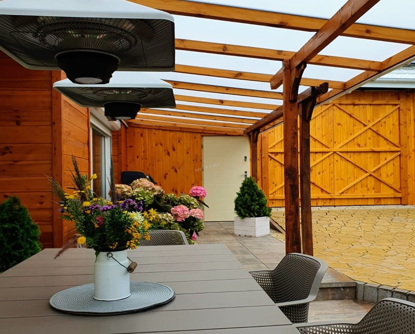 Ganzjährig, aus Holz, mit 80 m² großem Dachgeschoss und direktem Zugang zum See. Vier Zimmer, drei Schlafzimmer (zwei mit Doppelbetten, eines mit Einzelbetten), ein großes Wohnzimmer, ein ausklappbares Ecksofa, eine Kommode mit 65-Zoll-TV und eine moderne, voll ausgestattete Küchenzeile. Badezimmer, WC mit Bidet, großem Waschbecken, ebenerdiger Dusche, Haartrockner und Handtüchern. Im Dachgeschoss gibt es ein separates Badezimmer, WC mit kleinem Waschbecken. Im Außenbereich gibt es eine 25 m² große überdachte und beleuchtete Terrasse (mit ausfahrbarer Markise) mit Aussicht und direktem Zugang zum See, einen Gartentisch und Stühle aus Holz für 6 Personen, zwei Gartenliegen, einen Gasgrill und zwei Parkplätze.