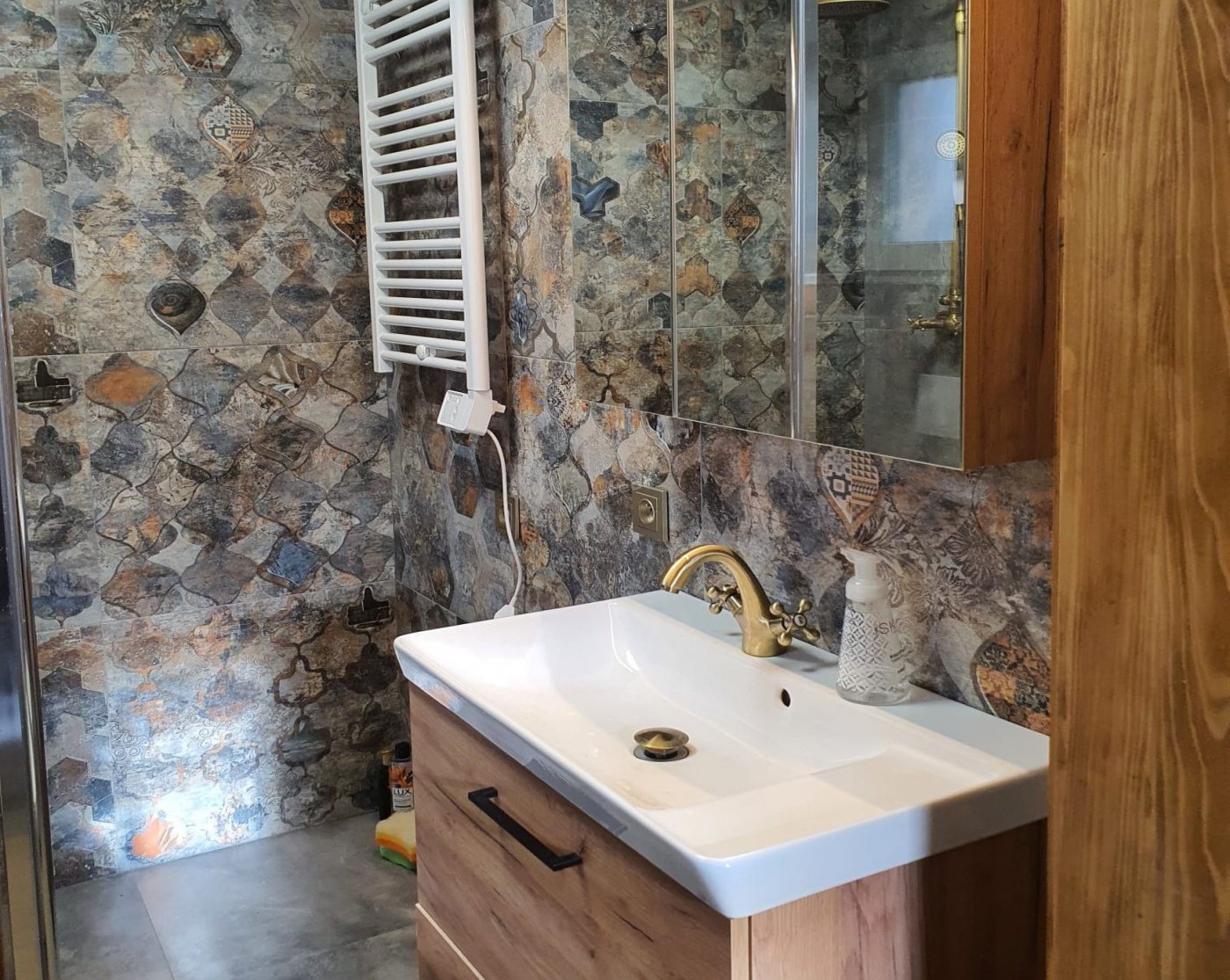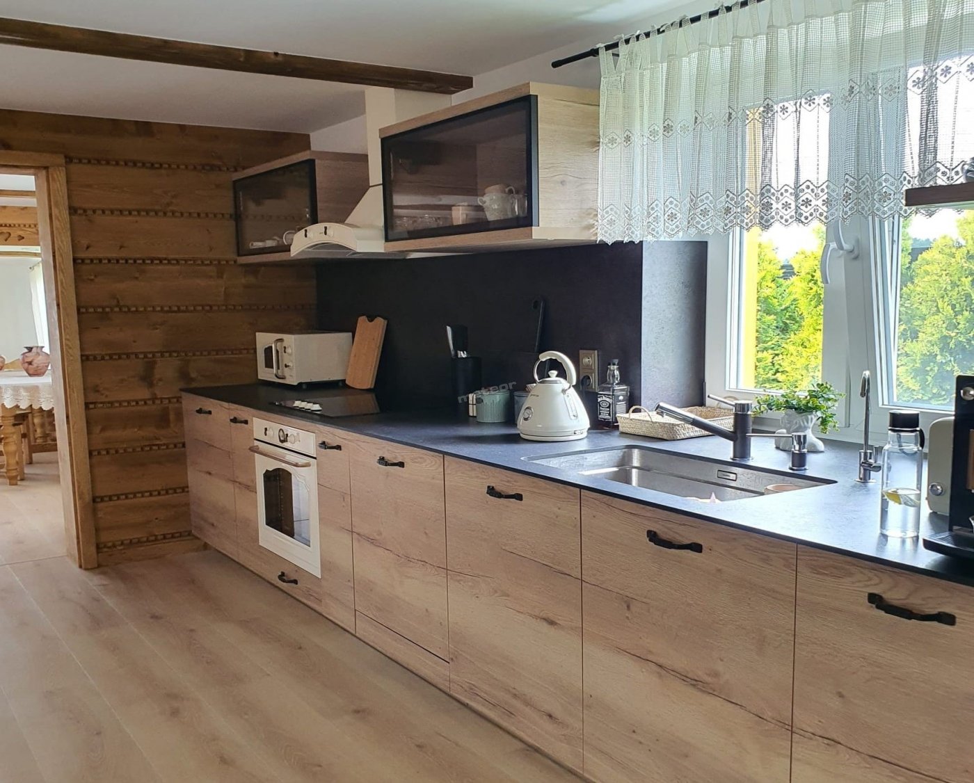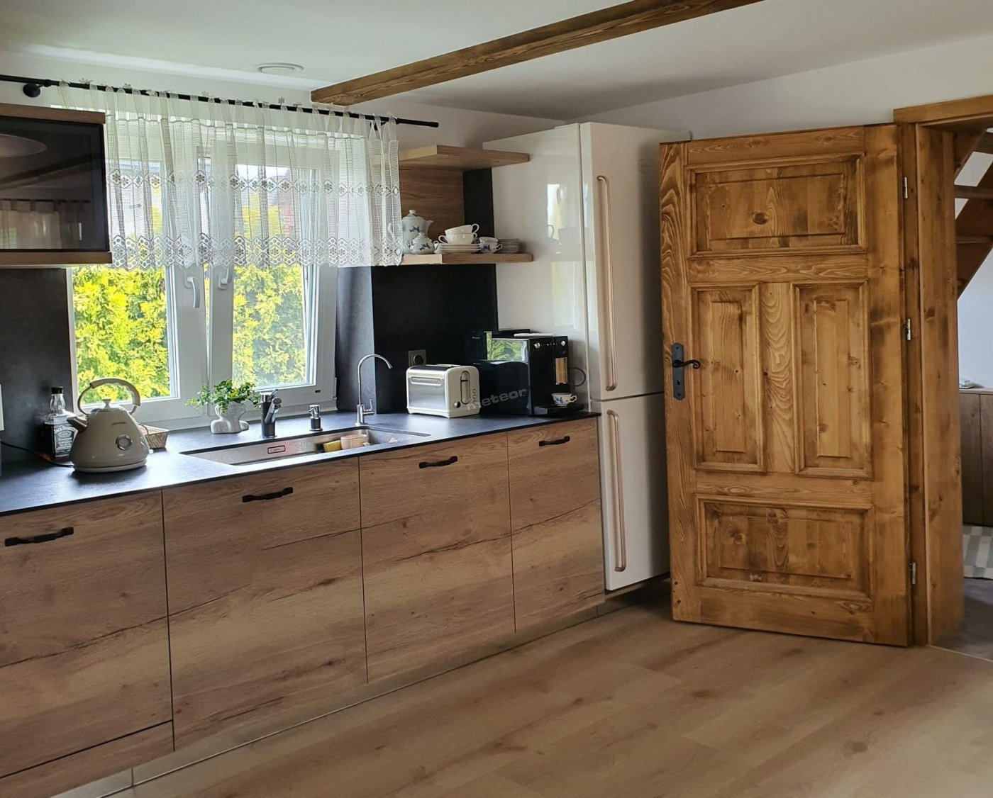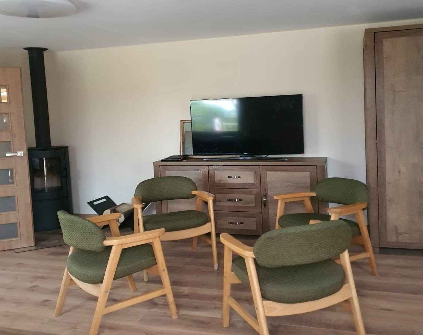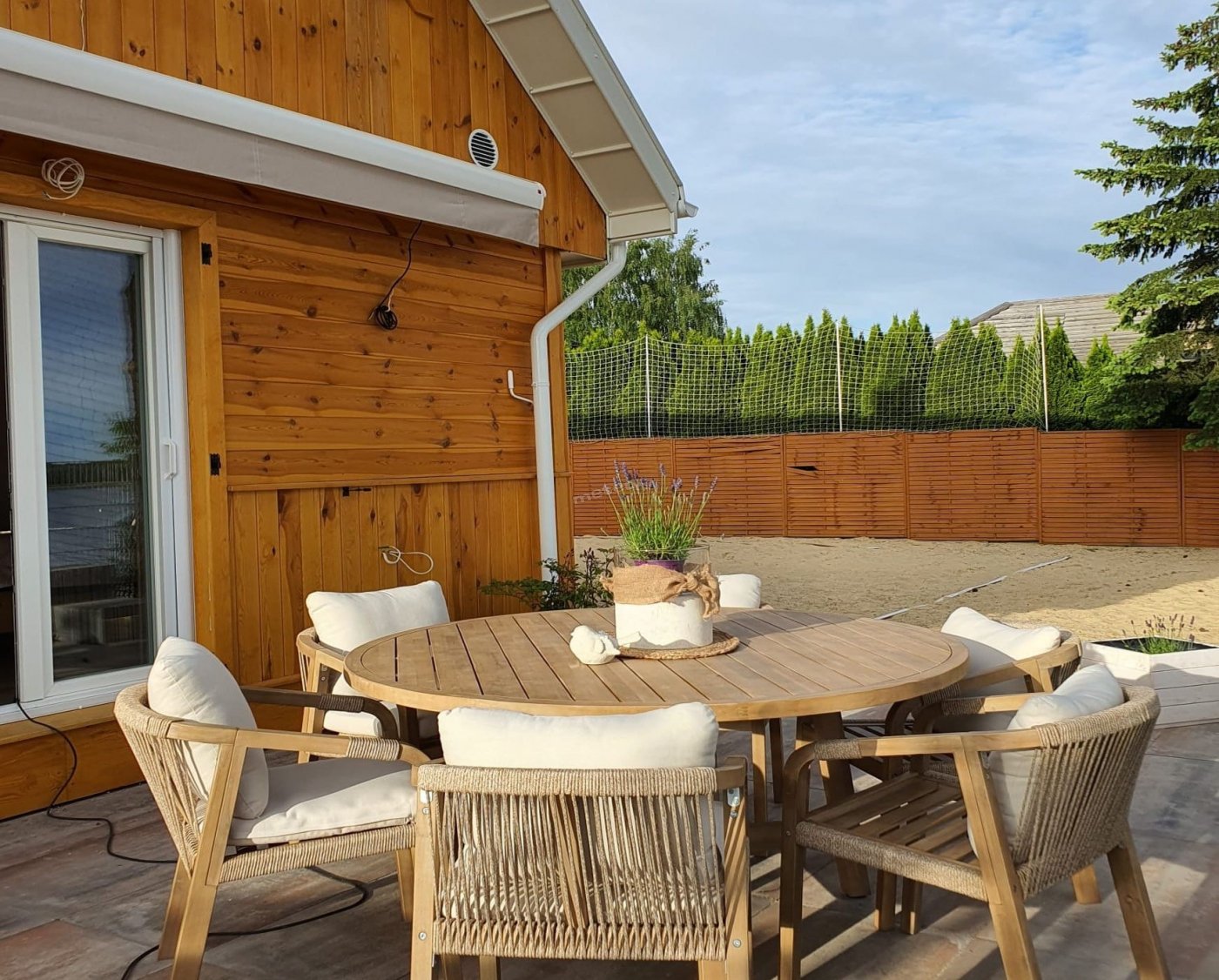 Diese Anlage setzt neue Maßstäbe im modernen Agrotourismus. Sie liegt direkt am Domaniowski-Stausee im Dorf Wólka Domaniowska, mit direktem Zugang zum Wasser, direkt am Waldrand. Auf 1.700 Quadratmetern eingezäuntem, grünem, blühendem und bewaldetem Grundstück befinden sich zwei unabhängige, voll ausgestattete Ferienhäuser mit überdachten Terrassen. Den Gästen stehen ein voll ausgestatteter Beachvolleyball-, Badminton- und Beachsoccer-Platz, eine Feuerstelle mit Grillmöglichkeit und ein Gasgrill zur Verfügung. Ein beheizter Whirlpool für 4 Personen ist auf Anfrage gegen Aufpreis verfügbar. Ein wunderschöner See mit eigenem Zugang (Stufen) zum Wasser, einem Tisch und Bänken am Seeufer, einem Wald und einer ruhigen Umgebung. Den Gästen stehen zwei Doppelkajaks und vier Fahrräder zur Verfügung. Ein idealer Ort für Angler und Ruhesuchende.