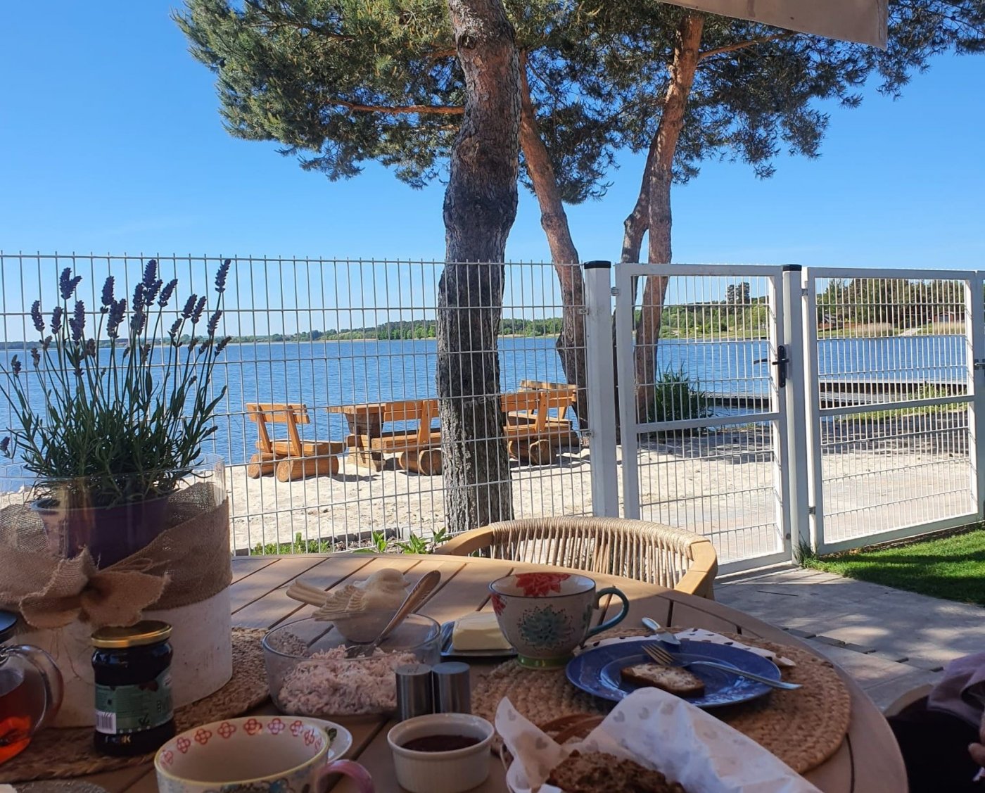 Direkter Zugang zum Wasser mit eigener Rampe, Tisch und Bänken am Ufer und Wald in unmittelbarer Nähe. Die Anlage ist die einzige ihrer Art am See. Eigene Beachvolleyball- und Beachsoccer-Plätze, ruhige Lage und eigene Kajaks. Die Anlage bietet einen hohen Standard. In der Nähe gibt es einen Verleih von Fahrrädern, Kajaks und weiterem Wassersportzubehör. Ein Paradies für Angler, die vom Ufer und vom Boot aus angeln können.