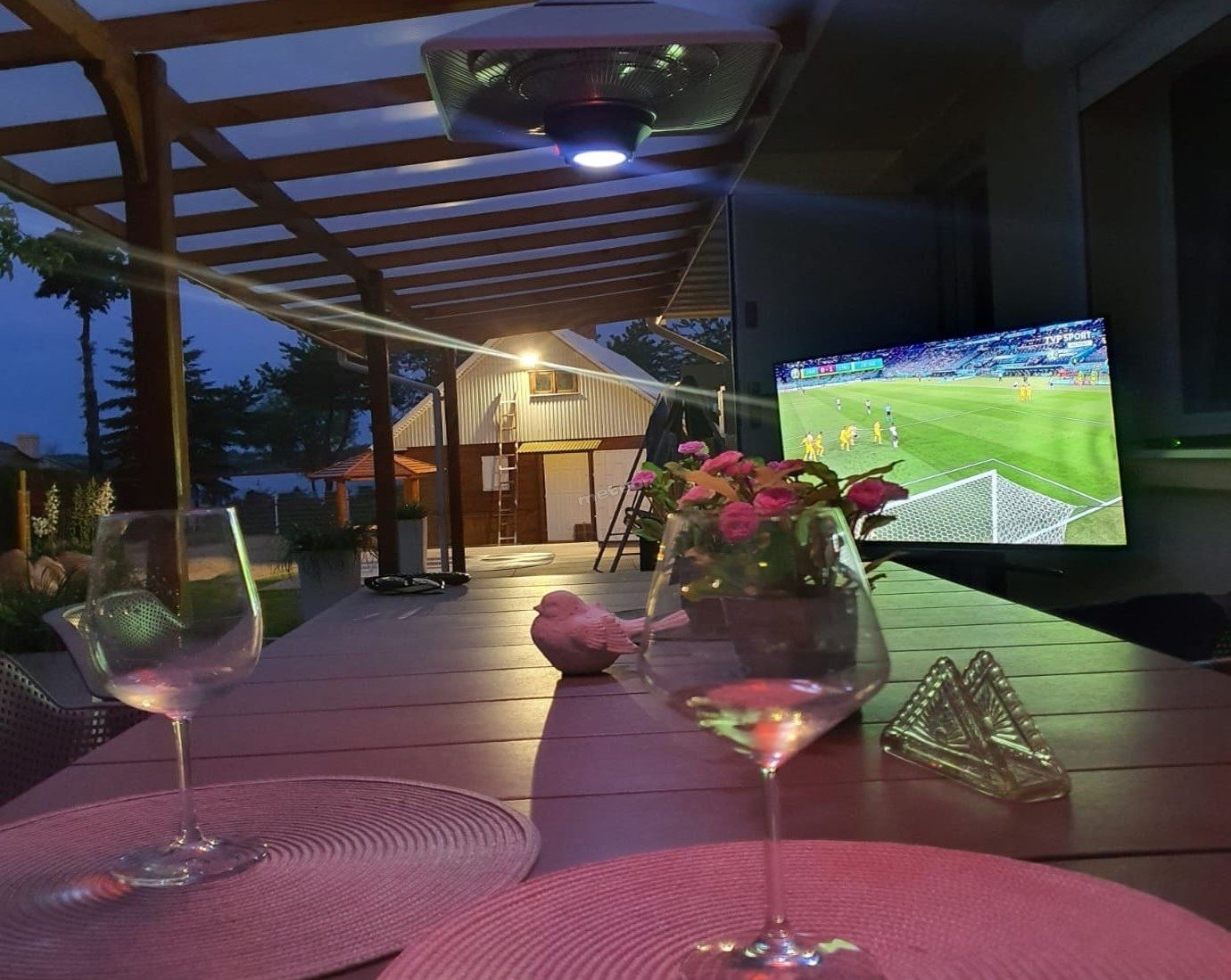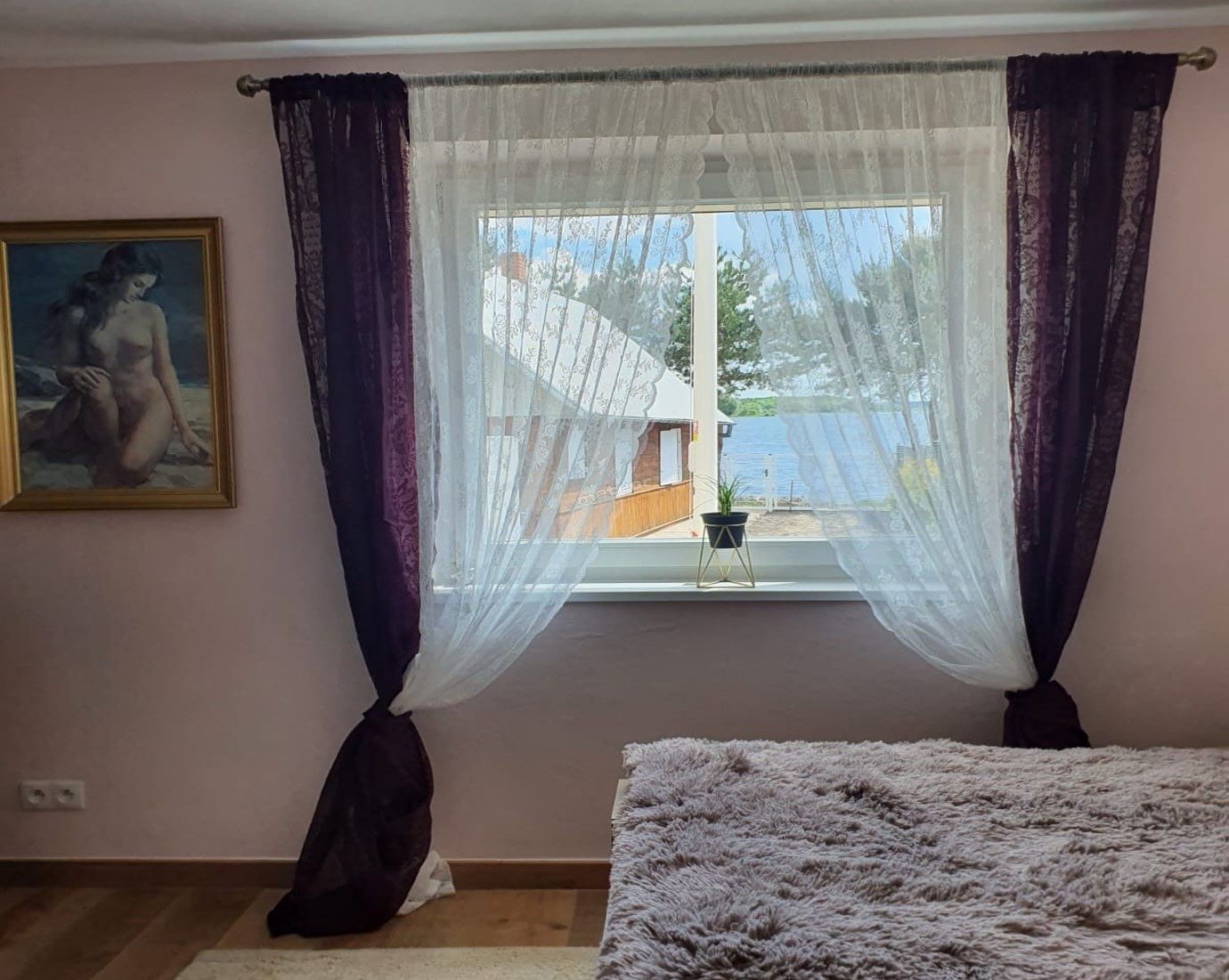 Dieses 70 m² große Backsteinhaus ist von Mai bis September verfügbar und verfügt über 4 Zimmer: 2 Schlafzimmer mit Doppelbetten, ein Wohnzimmer mit 2 Ausziehsofas, einen großen Kleiderschrank, eine Kommode mit 55-Zoll-Fernseher, eine separate, voll ausgestattete Küche, einen Geschirrspüler, eine Waschmaschine, einen Tisch mit Stühlen und ein Badezimmer mit Toilette, Dusche, großem Waschbecken, Haartrockner und Handtüchern. Draußen gibt es eine 50 m² große überdachte und beleuchtete Terrasse mit Seeblick, einen Gartentisch mit Stühlen, einen Fernseher, zwei Gartenliegen, eine Gartenschaukel für 4 Personen und eine große Feuerstelle mit Grill. Den Gästen stehen 3 Fahrräder für Erwachsene und eines für ein Kind sowie zwei Parkplätze für ein Auto zur Verfügung.