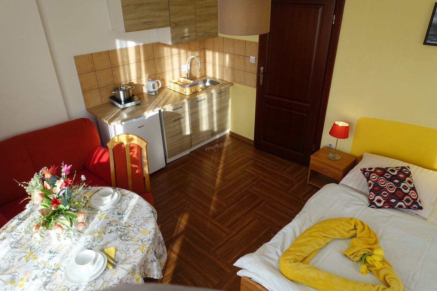 Das Appartement besteht aus: Schlafzimmer, Kochnische, Badezimmer, Terrasse.