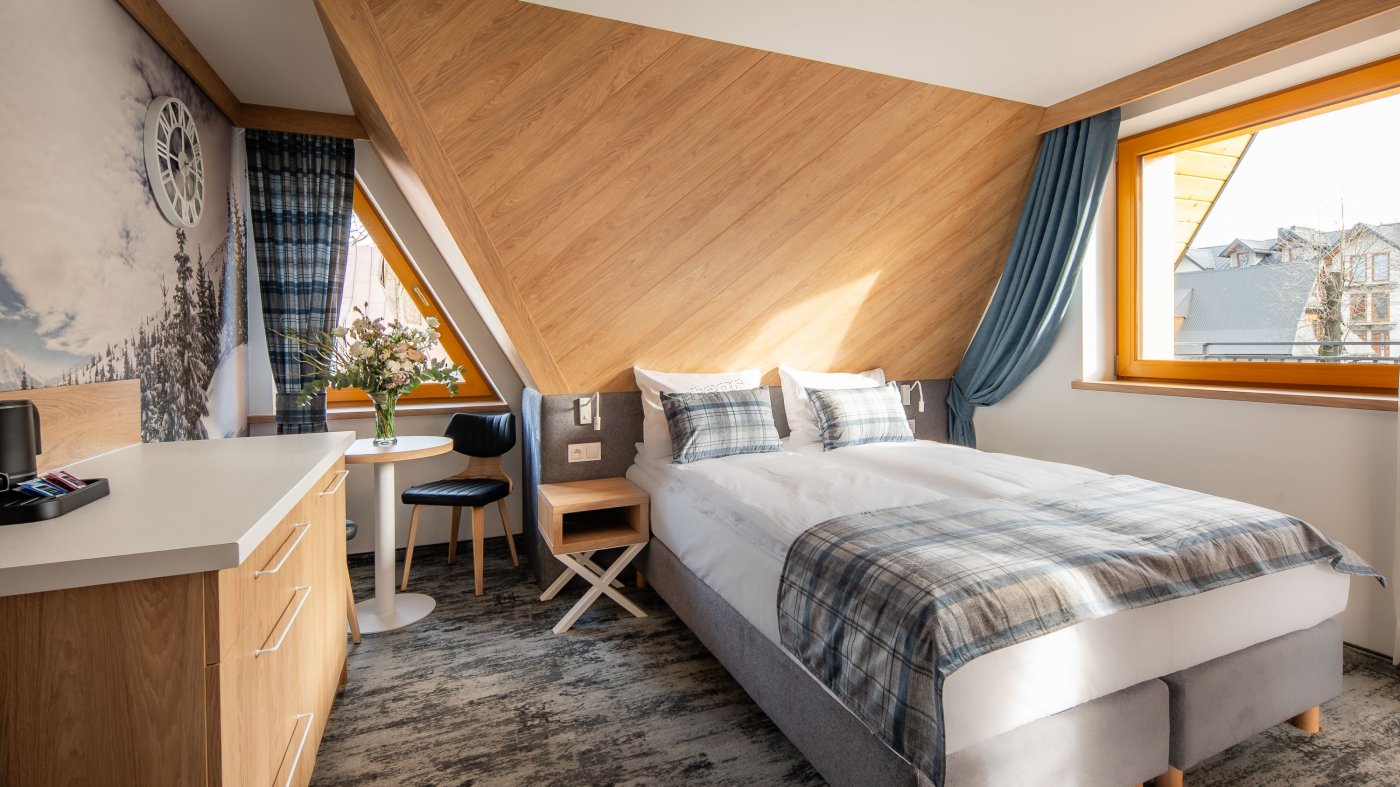 Aparthotel Delta Top jak sama nazwa wskazuje, jest położony najwyżej spośród wszystkich naszych obiektów, bo ponad 1000 m n.p.m. Lokalizacja na zboczu Butorowego Wierchu zapewnia niewiarygodne widoki, na wprost z całym pasmem Gór od prawej do lewej, a pośrodku wspaniałym Giewontem. Z każdej możliwej strony możemy podziwiać bliskość gór oraz atrakcje turystyczne takie jak np. kolejka linowa na Butorowy Wierch przebiegająca wprost nad naszymi głowami. Tak piękne widoki skłoniły nas do skupienia się na podkreśleniu tego waloru obiektu. W Aparthotelu Delta Top mogą Państwo skorzystać w STREFIE RELAKSU z JACUZZI Z PANORAMICZNYM OKNEM, na zjawiskowy widok Tatr. Tutaj możecie Państwo zażywać regeneracyjnych kąpieli i zachwycać się pięknym krajobrazem. Powodów do CELEBRACJI WIDOKÓW jest jeszcze więcej, bo to również podgrzewany BASEN oraz SAUNA zlokalizowane na dodatkowym wzniesieniu, aby można było w 100% świętować czas relaksu i wypoczynku, ładując energie na kolejne dni.