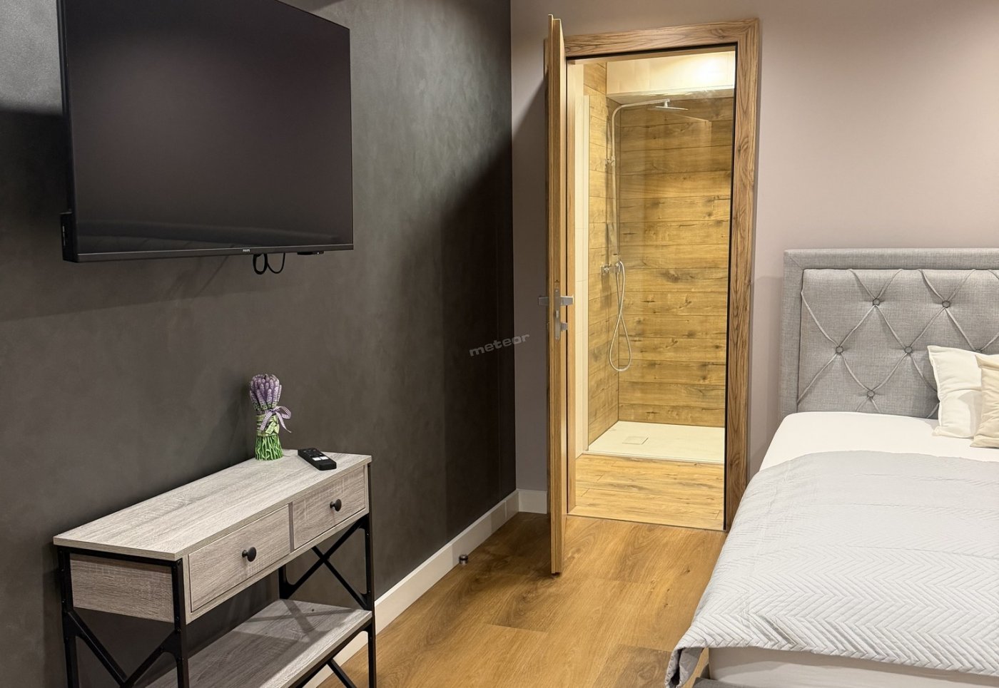 Apartament z prywatnym aneksem kuchennym.