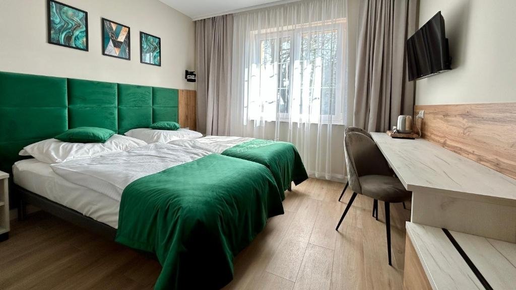 W pokojach: dostęp do internetu, czajnik, kawa, herbata, cukier, ręczniki.