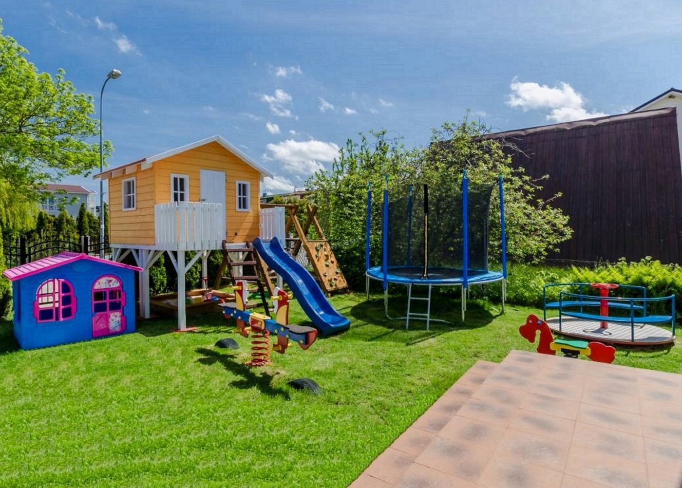For children: playground (carousel, swings, playhouses, climbing walls, toys, rocking chairs, sandbox, ladders, trampoline).