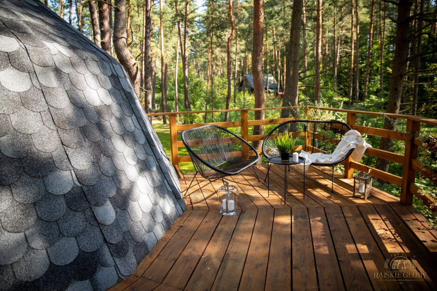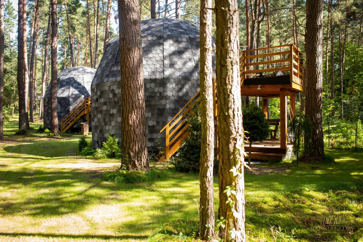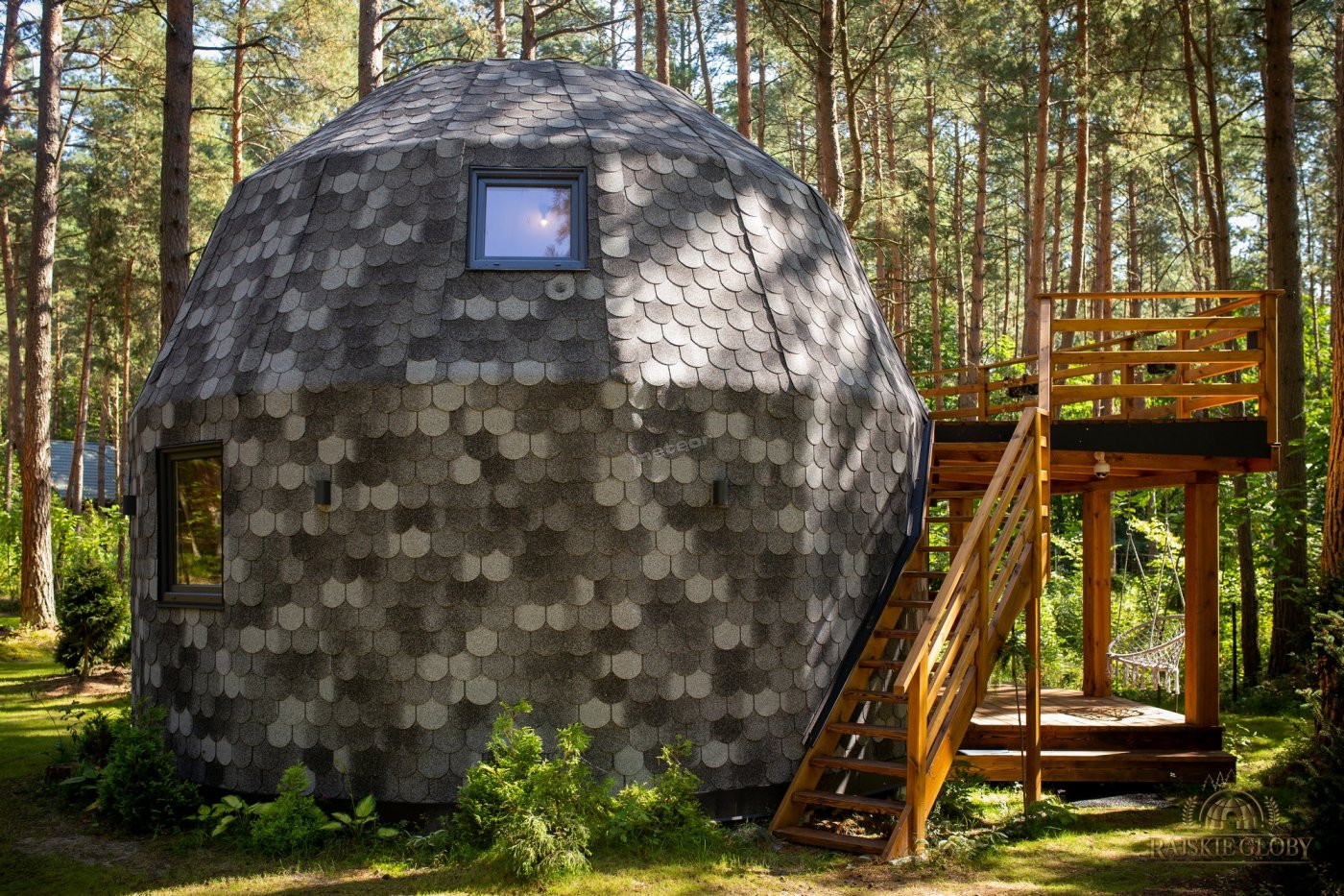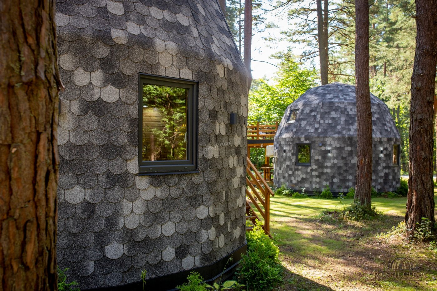Wooden, dome-shaped houses with underfloor heating and air conditioning.