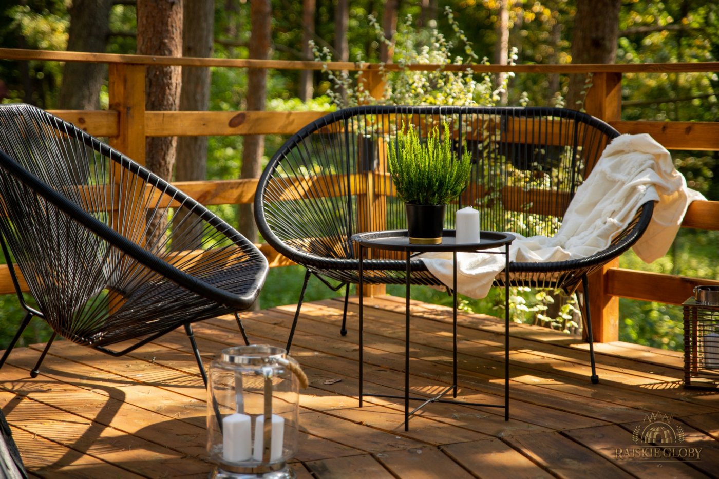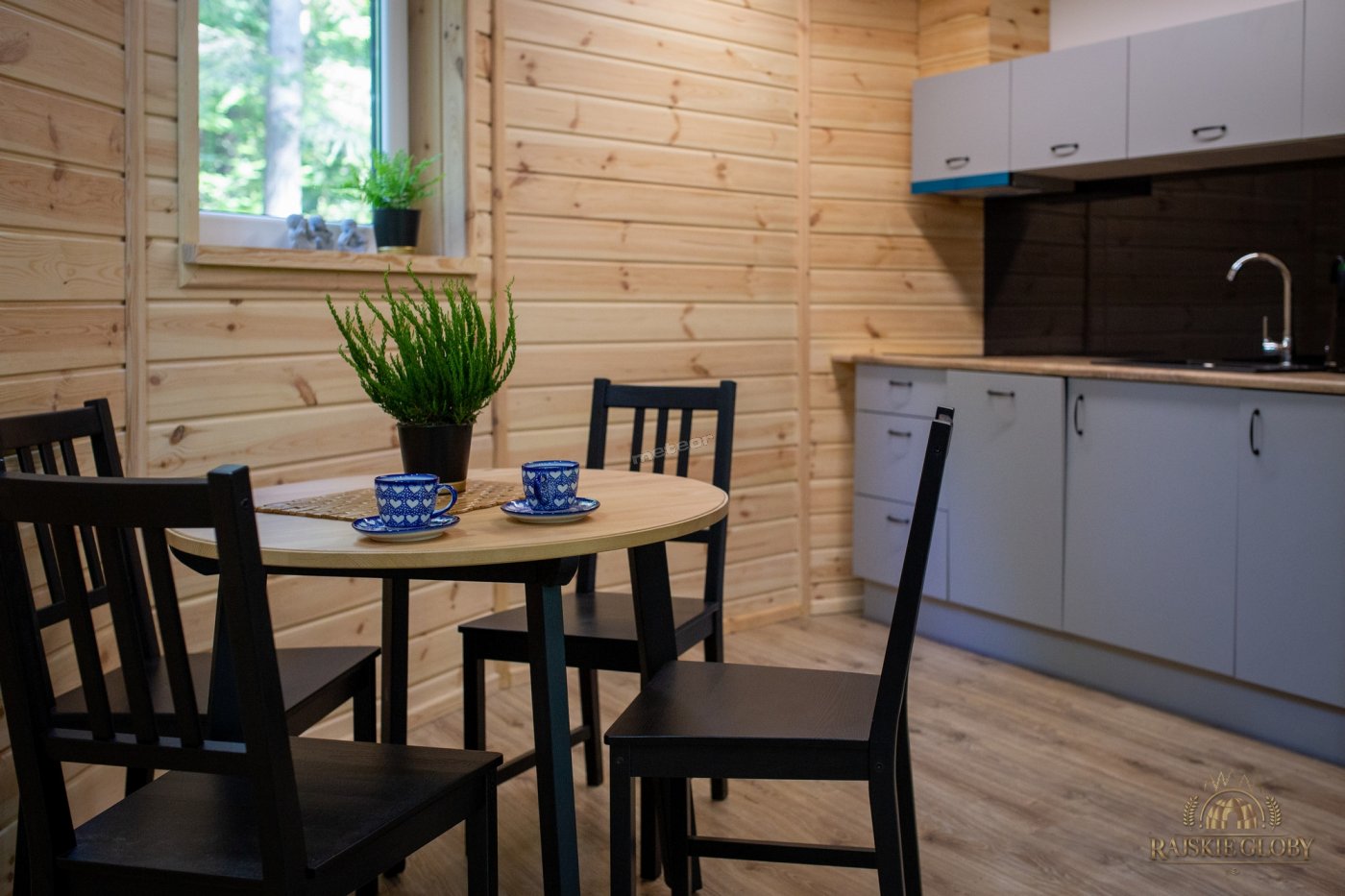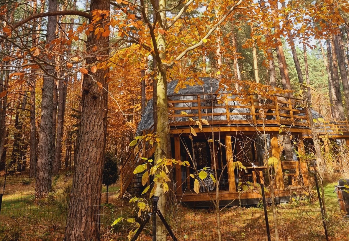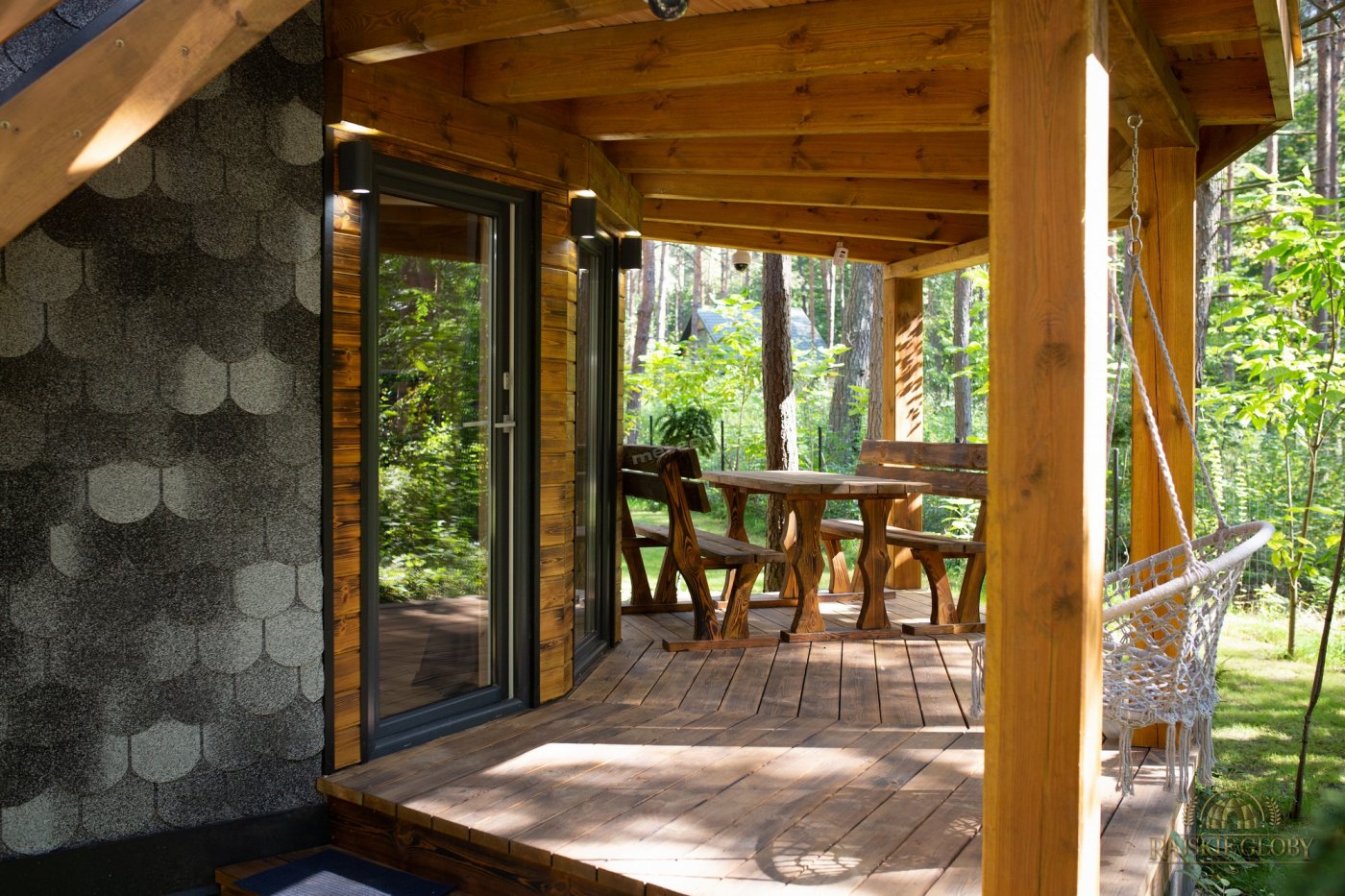 Wooden, dome-shaped houses with underfloor heating and air conditioning.