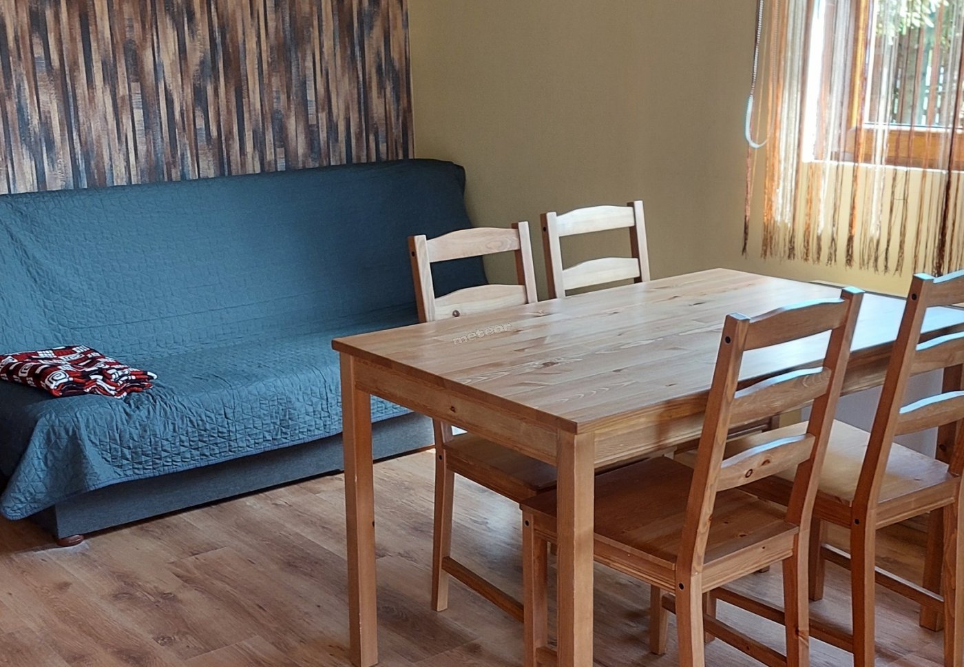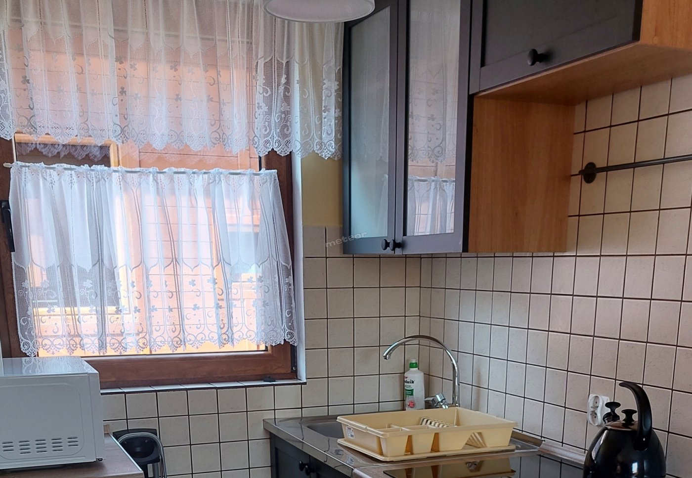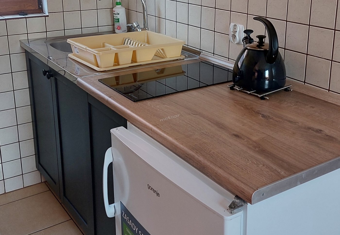 La cocina está equipada con: frigorífico, ollas, sartenes, platos, tazas, cubiertos, vitrocerámica.