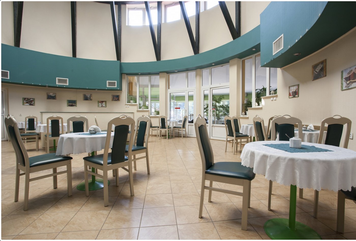 El edificio principal alberga la recepción, el comedor, la cafetería, las salas de conferencias y las instalaciones de bienestar (que incluyen sauna, gimnasio, solárium y jacuzzis). Su carácter multifuncional proporciona las condiciones ideales de relajación para cada huésped y permite la organización de todo tipo de cursos de formación y conferencias.