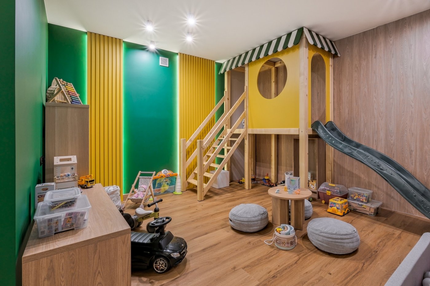 Para los niños hay una sala de juegos (tobogán, piscina de bolas, estructuras para trepar, juguetes).