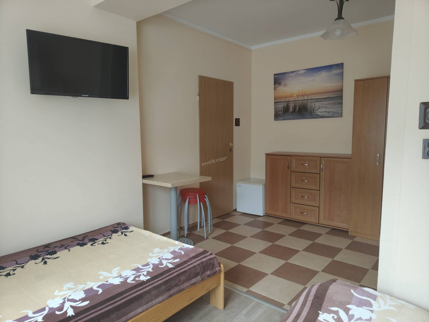 Na wyposażeniu pokoju: lodówka, czajnik, podstawowe naczynia, telewizja.