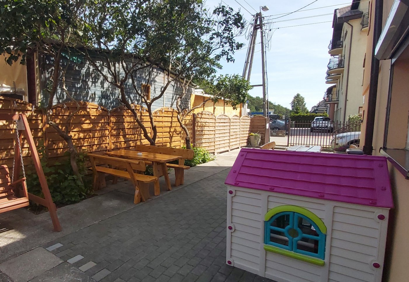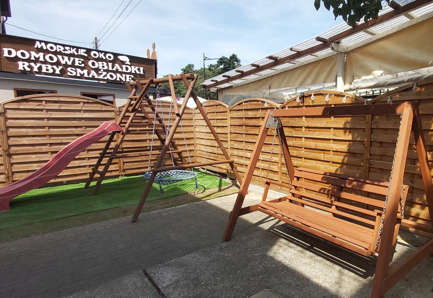 Dla dzieci: trampolina, huśtawka, zjeżdżalnia, domek do zabawy.