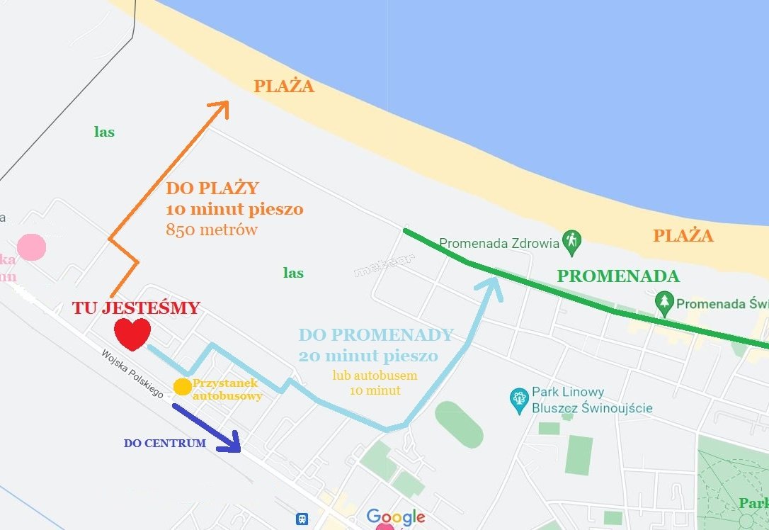 DO PROMENADY 1,5 KM = 20 MINUT SPACEREM lub 10 MINUT AUTOBUSEM