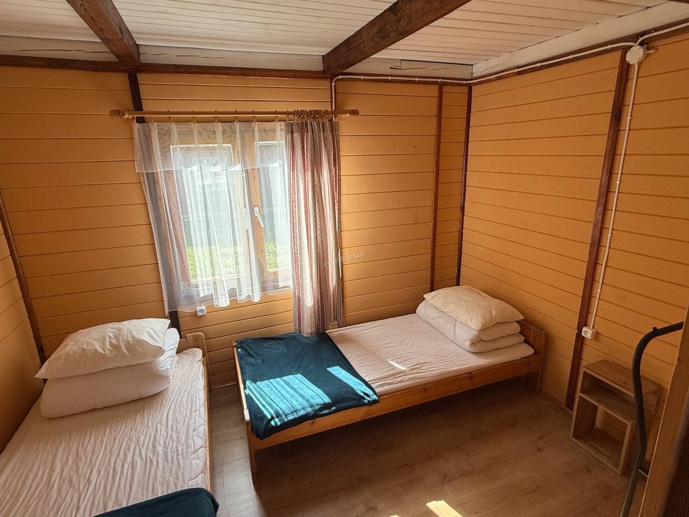 W domku znajdują się dwa pokoje z dwoma lub trzema łóżkami lub jeden pokój z trzema łóżkami w domkach3-osobowych.