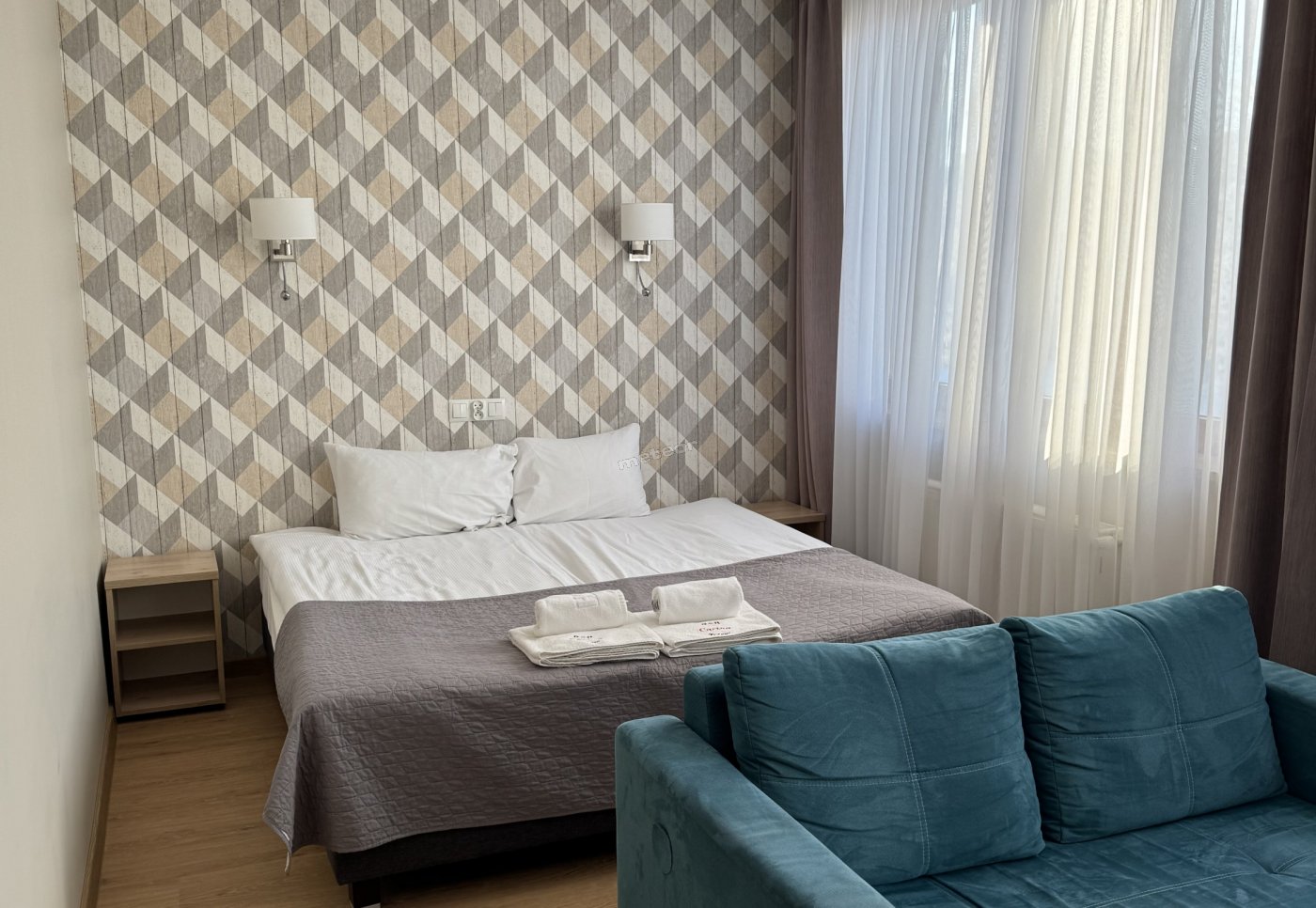 L'appartamento di alto standard: della superficie di 25 m2. L'ppartamento di alto standard comprende: il soggiorno, il bagno, la camera da letto.