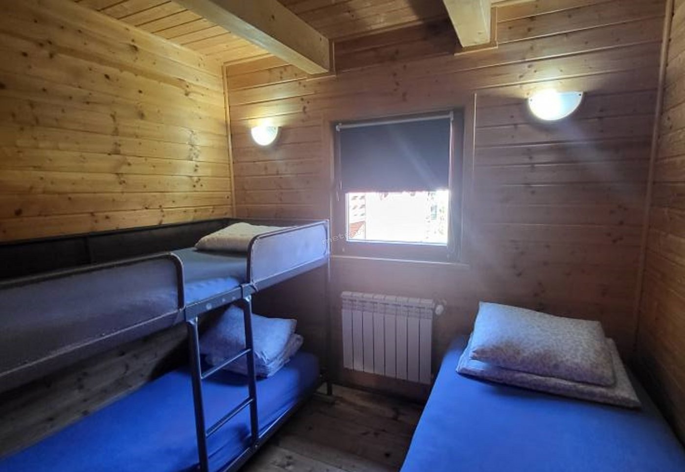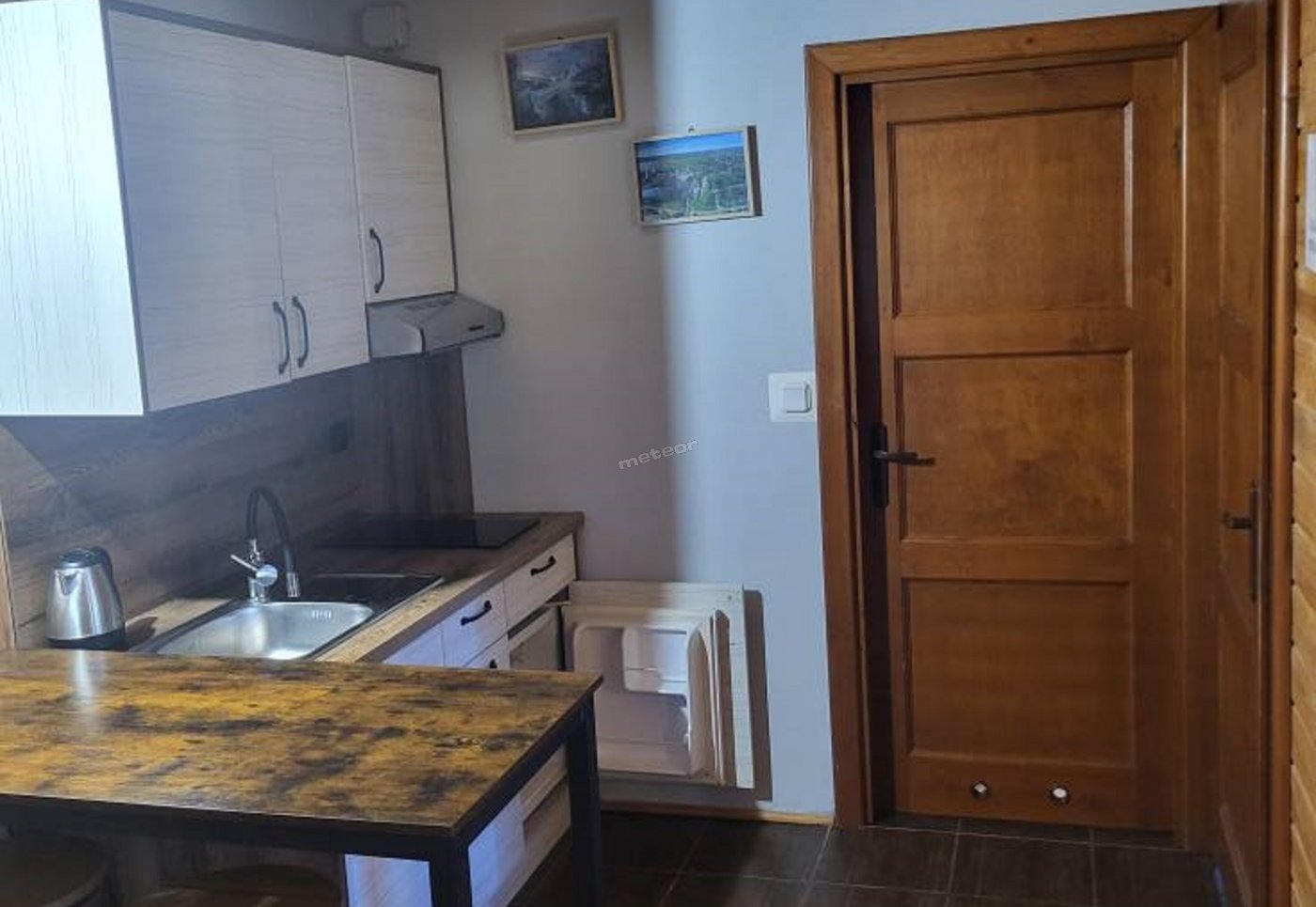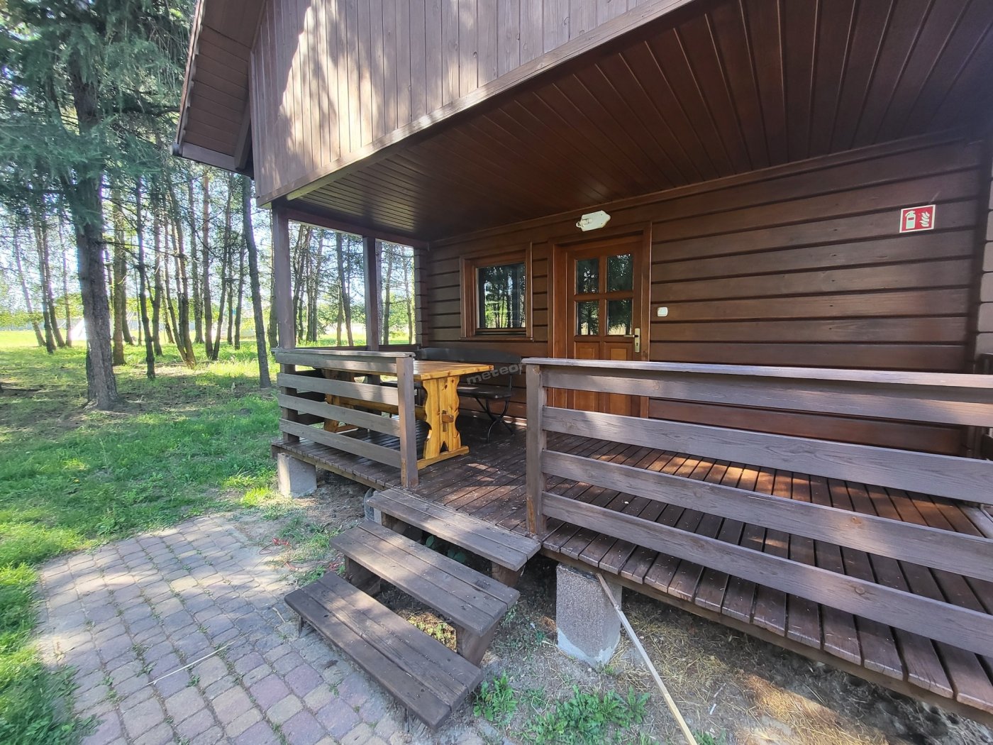 Całoroczne domki drewniane, w każdym z nich znajdują się dwa niezależne apartamenty.