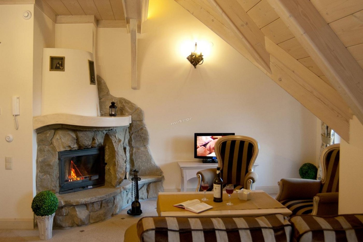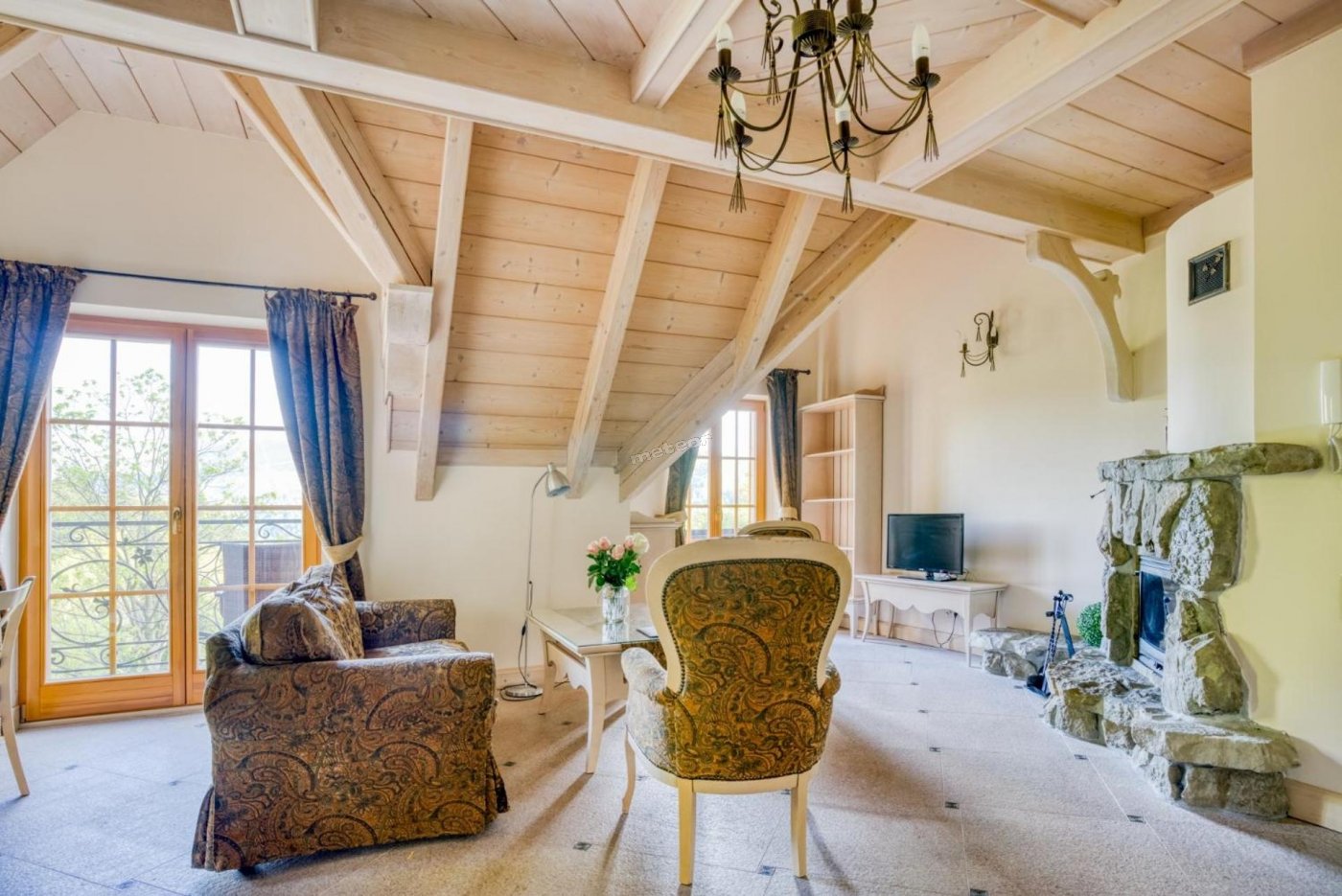 Niektóre apartamenty dysponują nastrojowym kominkiem lub bezpośrednim wyjściem do ogrodu.