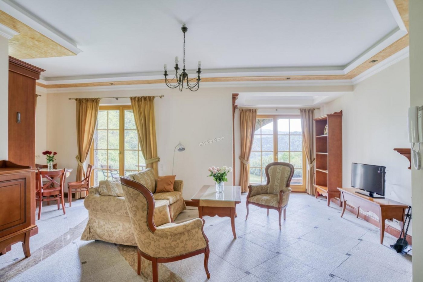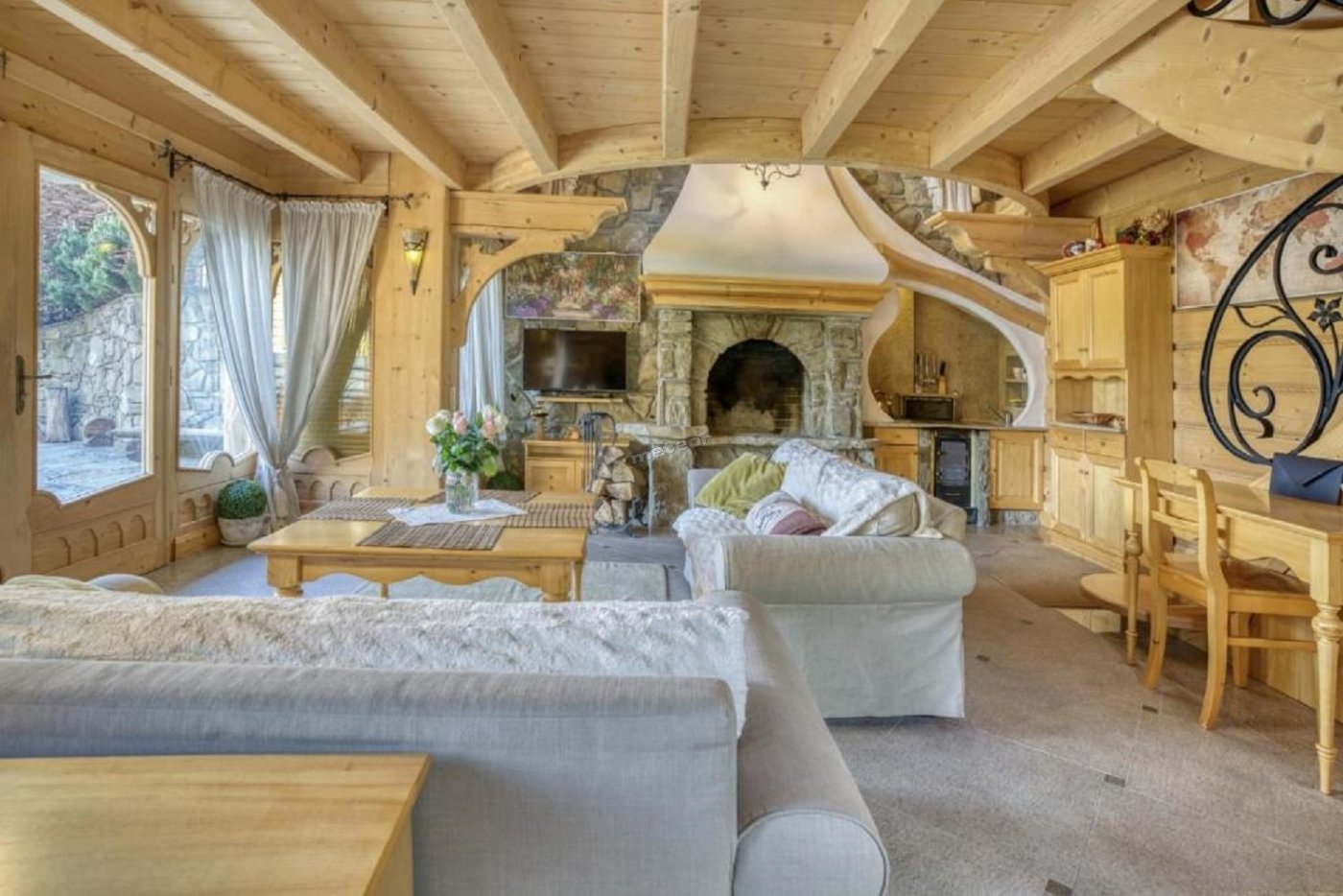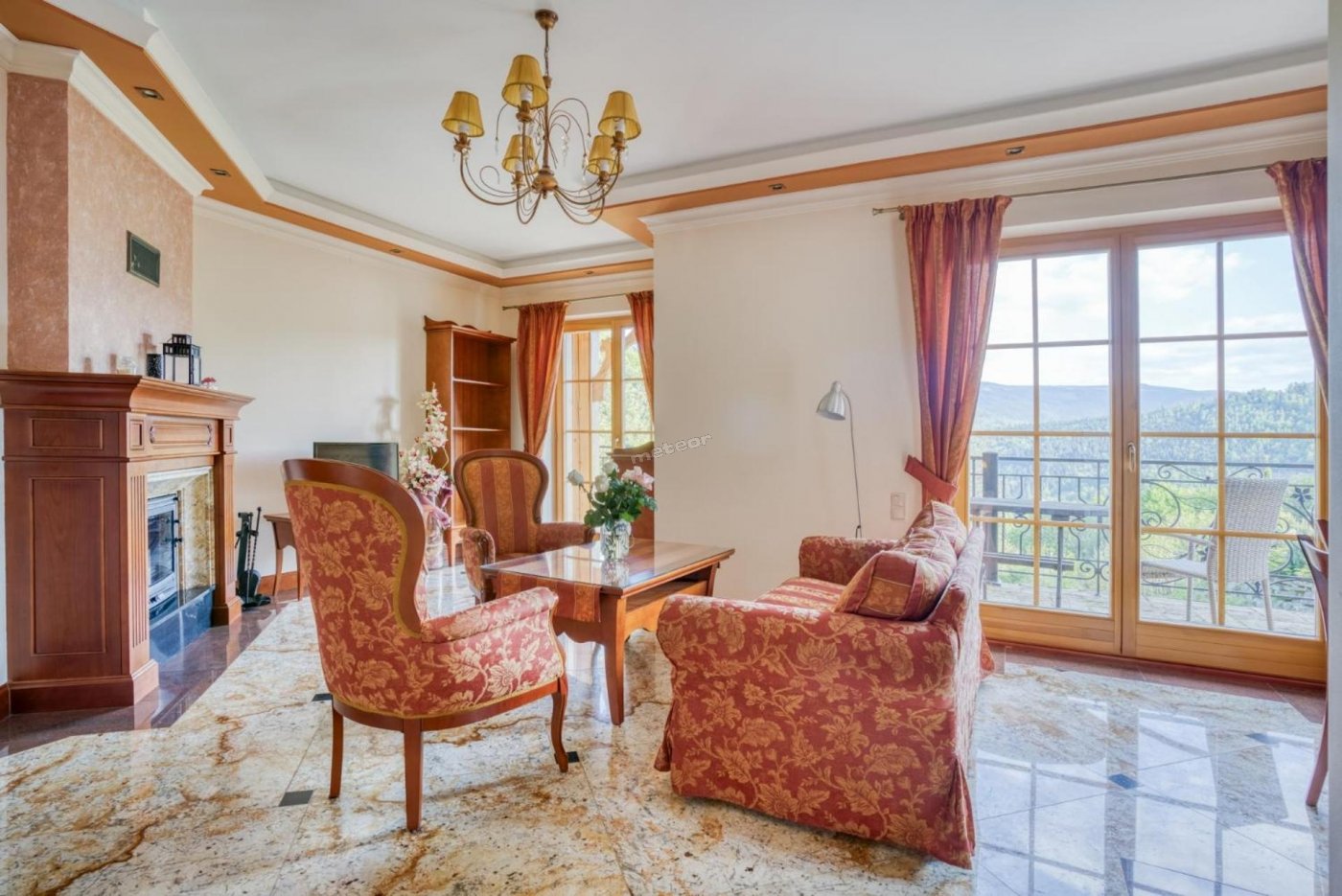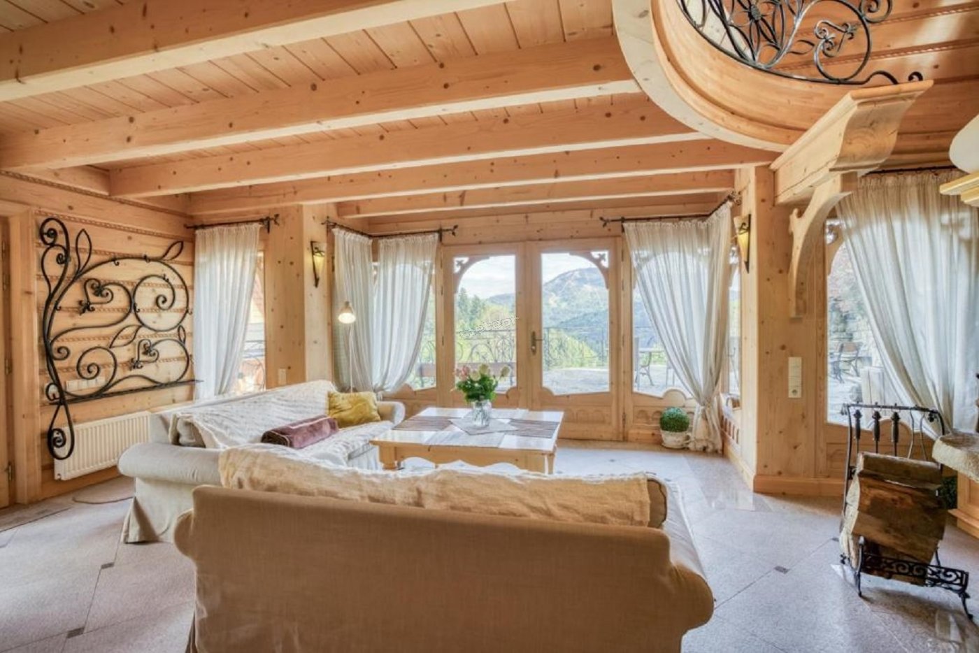 Z salonu oraz balkonu rozciągają się widoki na górskie szczyty.