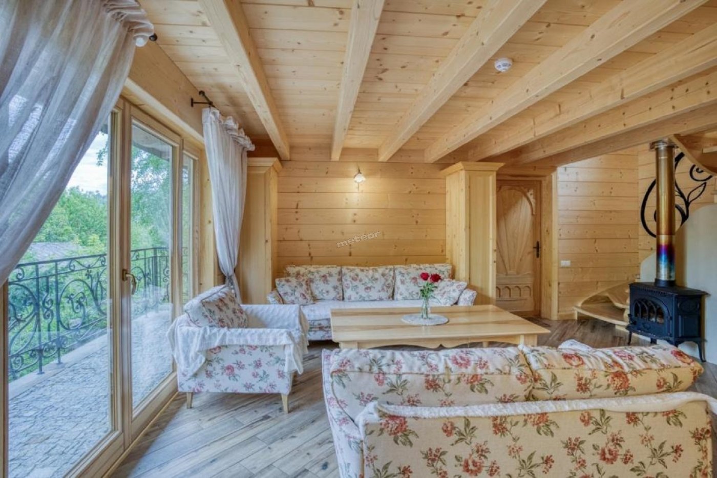 Domek Drewniany pomieści 6 osób, jest możliwość rozłożenia kanapy dla dodatkowych gości (max. 2 osoby).