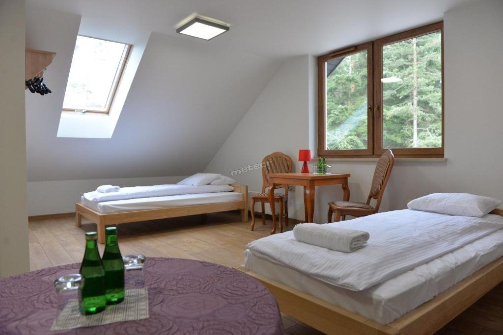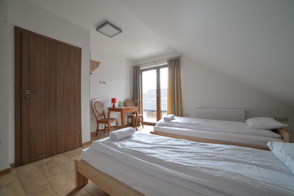 Pokój 4-osobowy z łazienką (z 4 łóżkami pojedynczymi lub 2 łóżkami podwójnymi) za 1 dobę, ze śniadaniem - 600 zł. / bez śniadania - 360 zł.