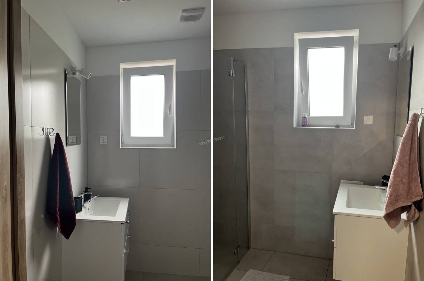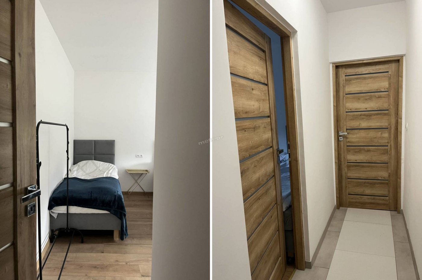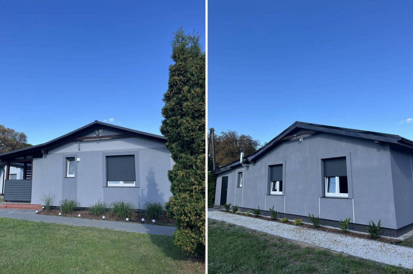 Domek ma dwa wejścia i podzielony jest na dwie części.