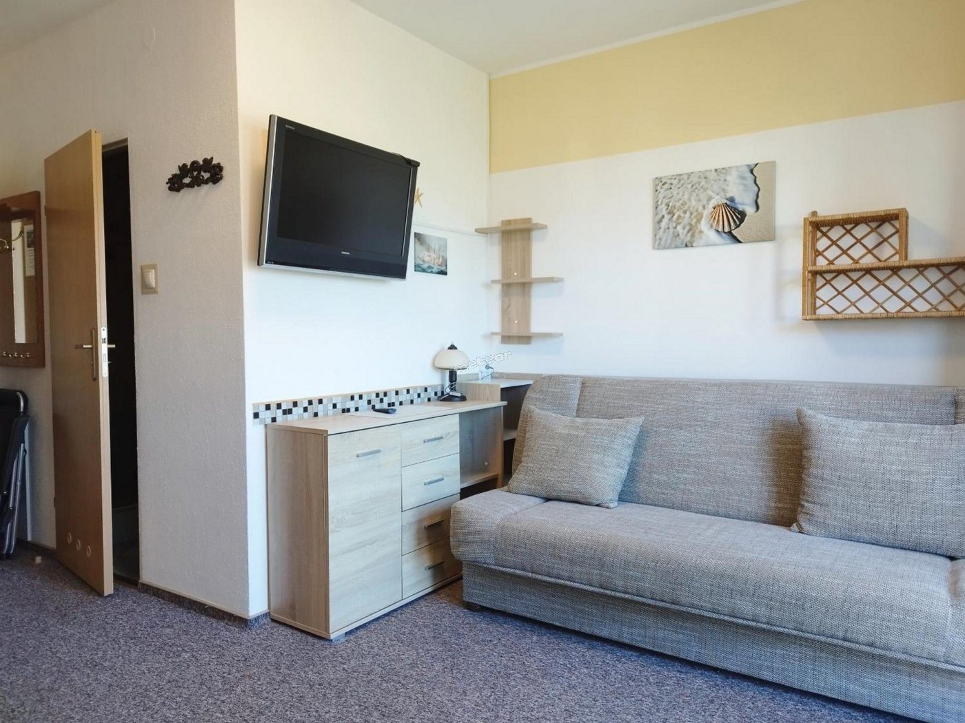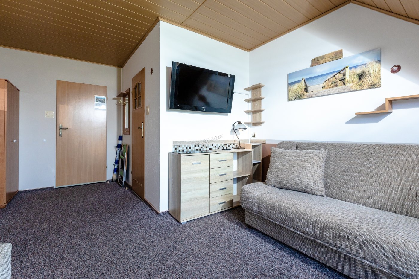 W apartamencie: TV, lodówka, czajnik, sprzęt plażowy.