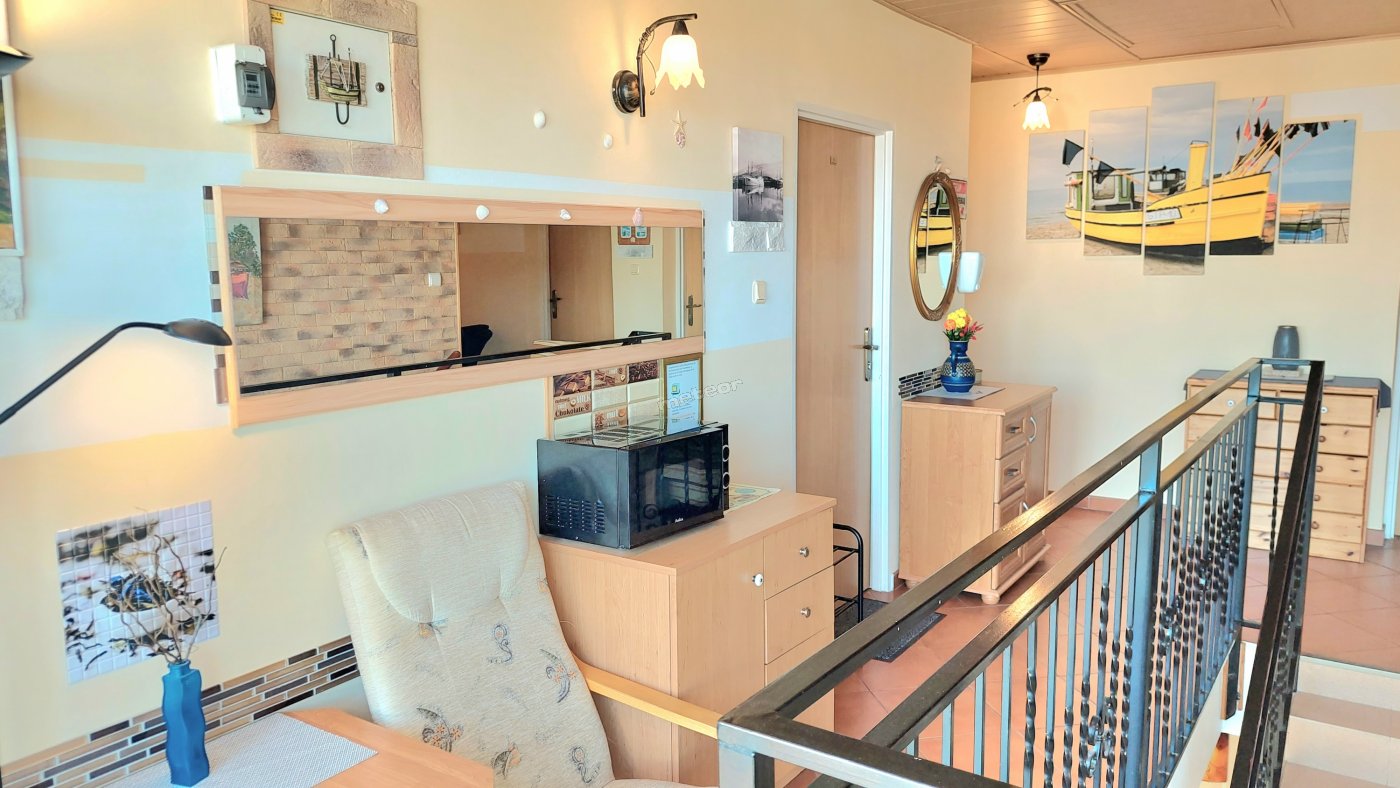 aneks kuchenny posiada lodówke, czajnik, mikrofale, płytę grzejną - są tam podstawowe przybory kuchenne.