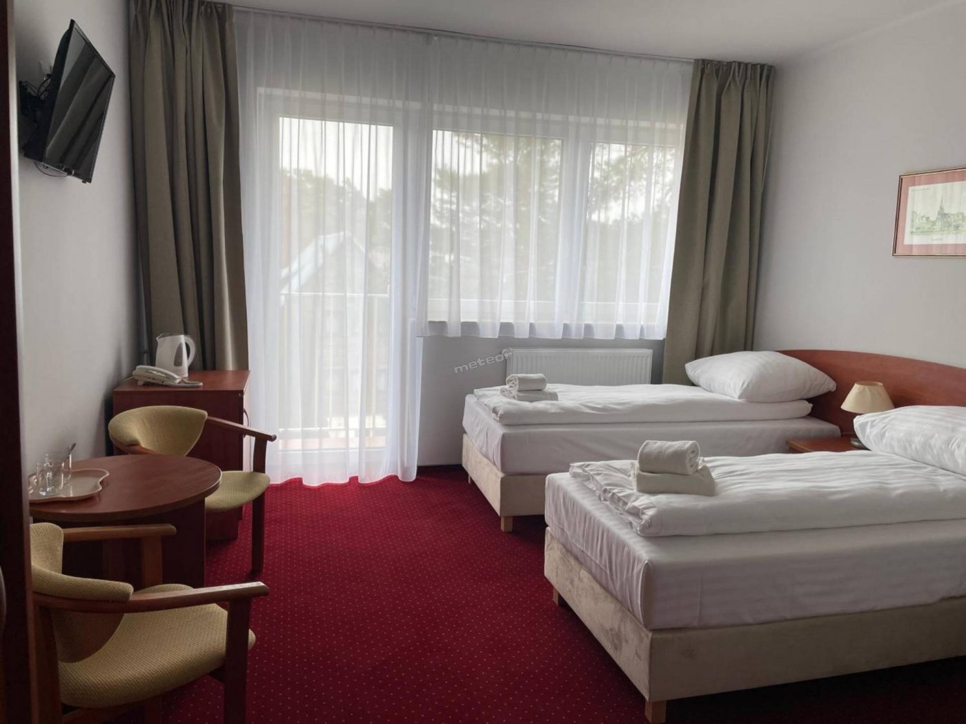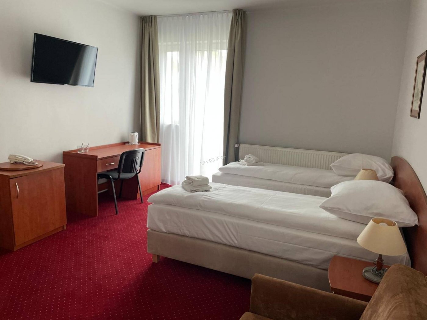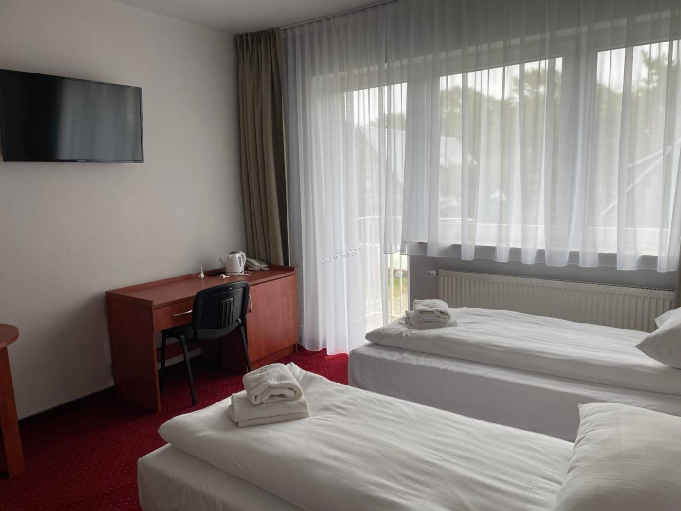 W pokojach: telewizja, czajnik, lodówka, ręczniki