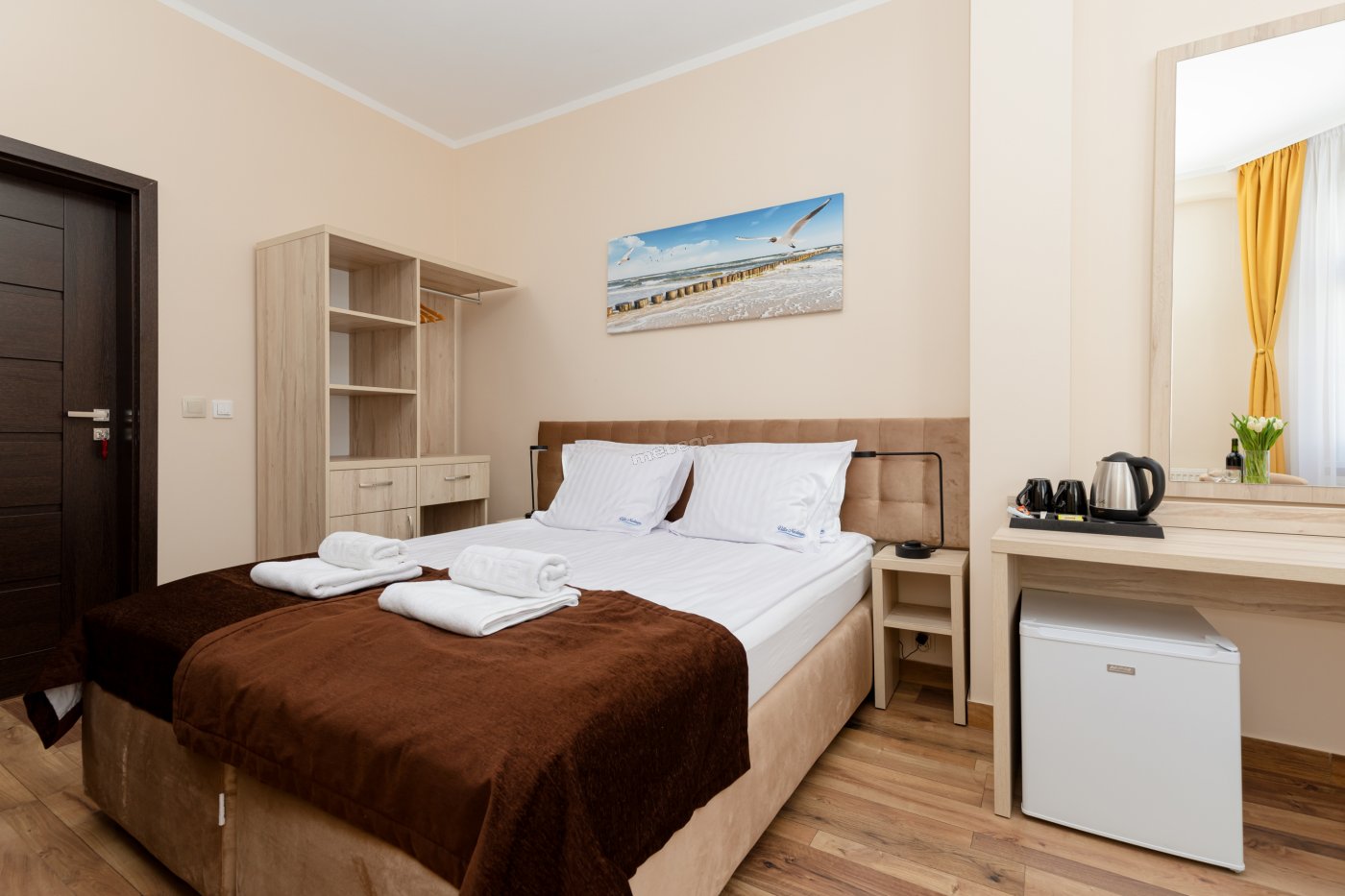 W pokojach: Wi-Fi, TV, lodówka hotelowa, zestaw do parzenia kawy i herbaty.