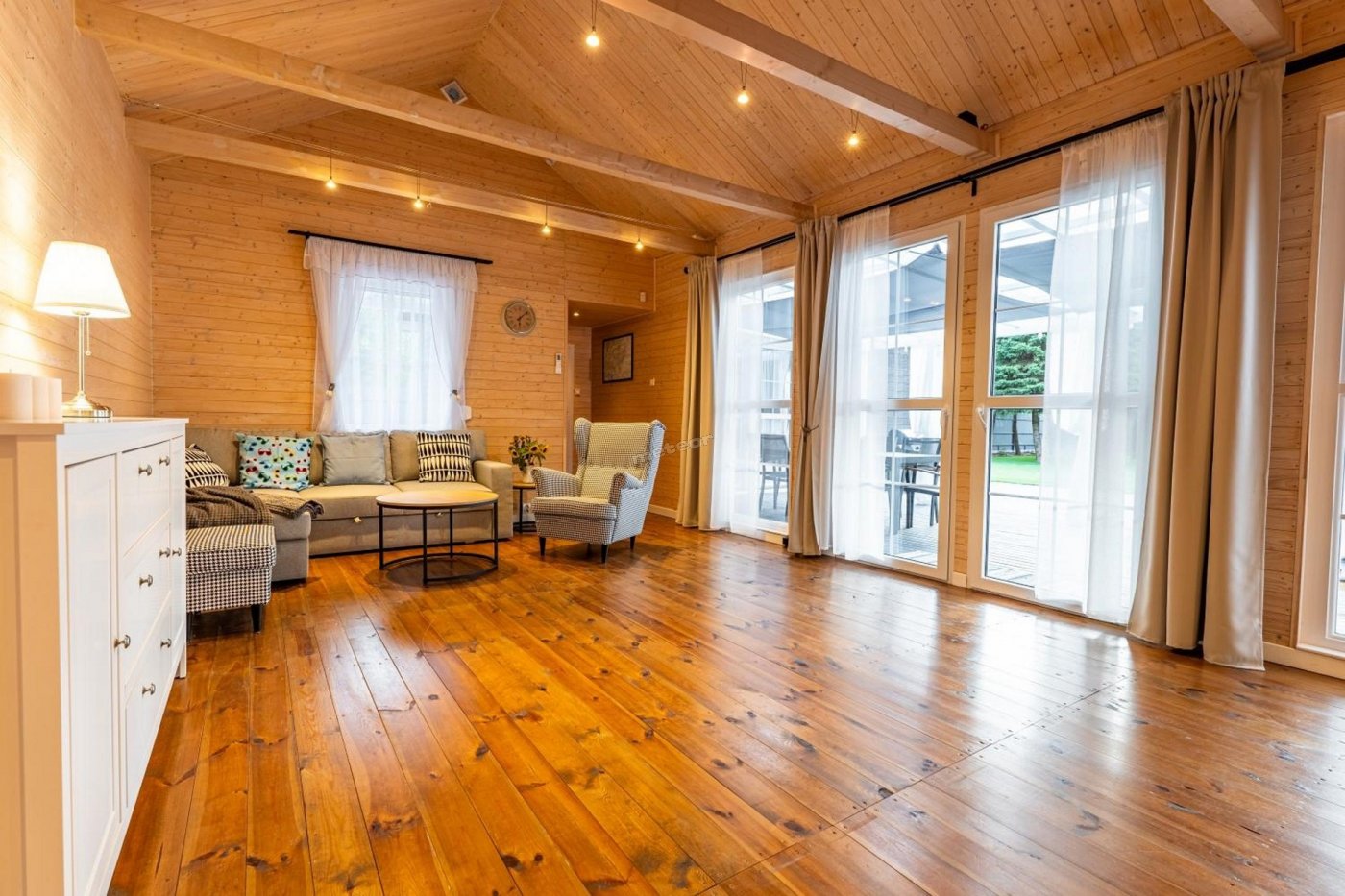 Komfortowy domek, duża przestrzeń do wypoczynku, salon z kominkiem, cicha i spokojna okolica.