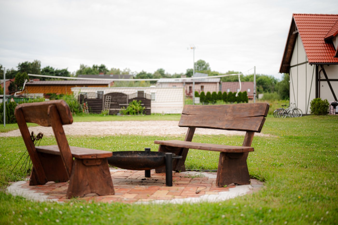 Obiekt posiada plac zabaw dla dzieci z trampoliną, boisko do siatkówki plażowej oraz palenisko do grilla.