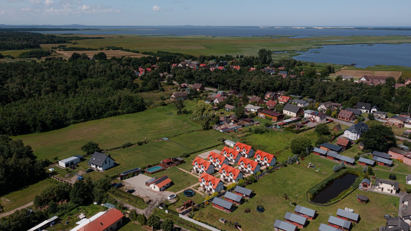 Osada położona jest przy wschodniej ścianie Słowińskiego Parku Narodowego.