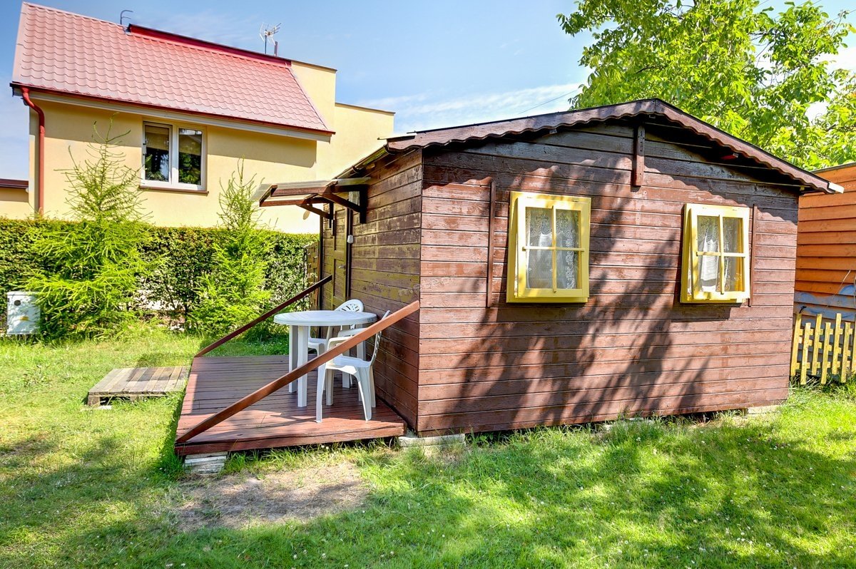Na domek składa się: pokój z aneksem kuchennym, łazienka, tarasik ze stolikiem i krzesełkami.