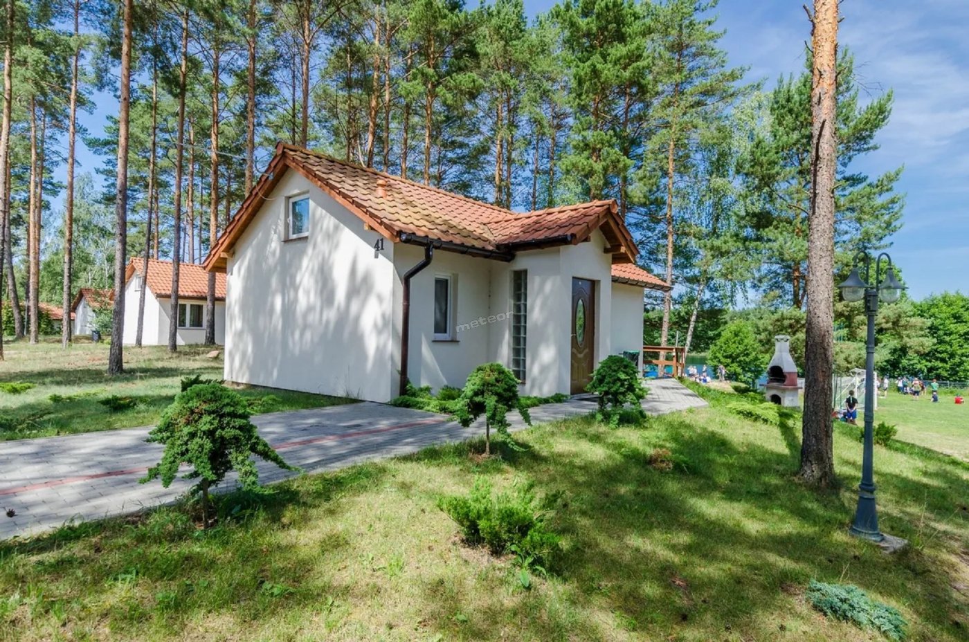 * Komfortowe, wolnostojące domki z widokiem na jezioro, dla maksymalnie 4 osób - pokój dzienny (podwójna kanapa) z kominkiem, aneksem kuchennym i wyjściem na taras, 2-osobowa sypialnia, łazienka (toaleta, umywalka, kabina natryskowa z hydromasażem).