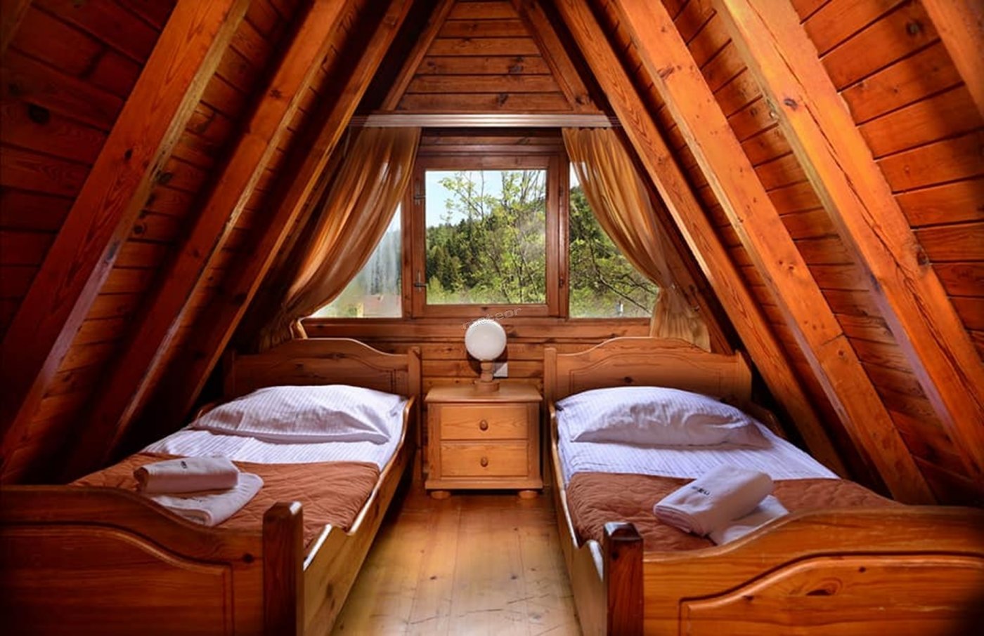W ofercie klimatyczne domki 2, 4,5 i 6-osobowe z aneksami kuchennymi i łazienkami.