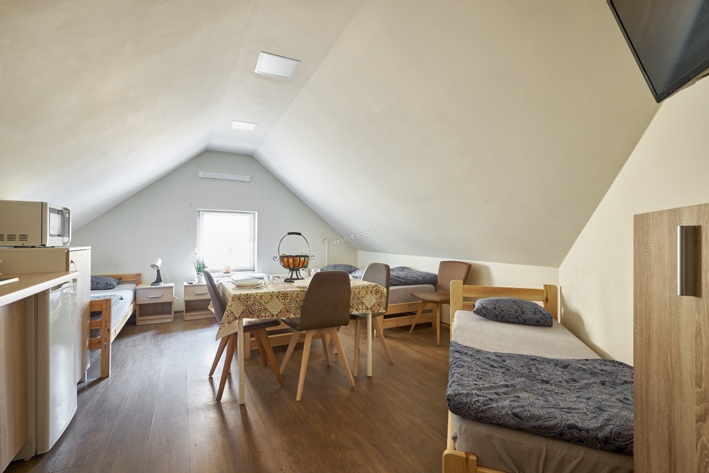 Oferujemy 107 miejsc dla naszych gości, w tym 21 samodzielnych apartamentów z prywatnymi łazienkami i kuchniami oraz 17 ekonomicznych pokoi z aneksami kuchennymi i wspólnymi łazienkami.