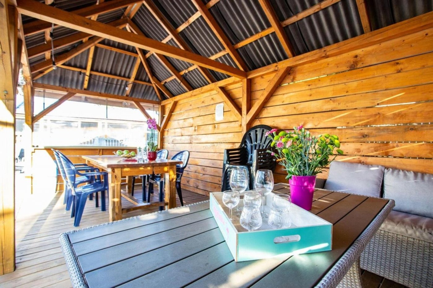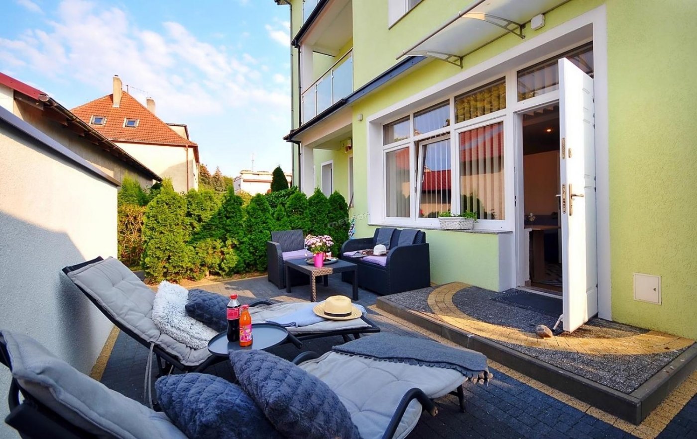 W ogrodzie jest możliwość grillowania, na tarasie są leżaki.