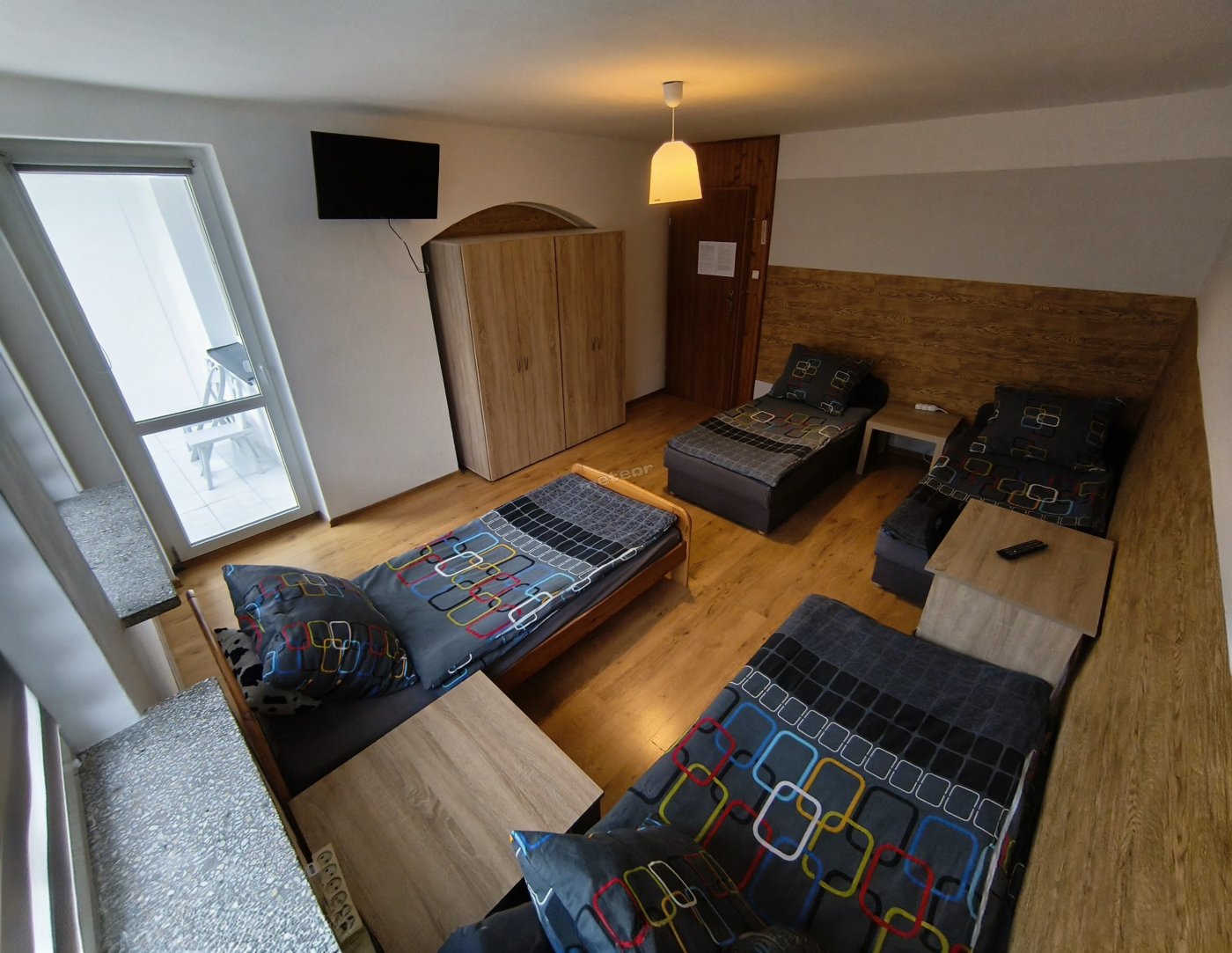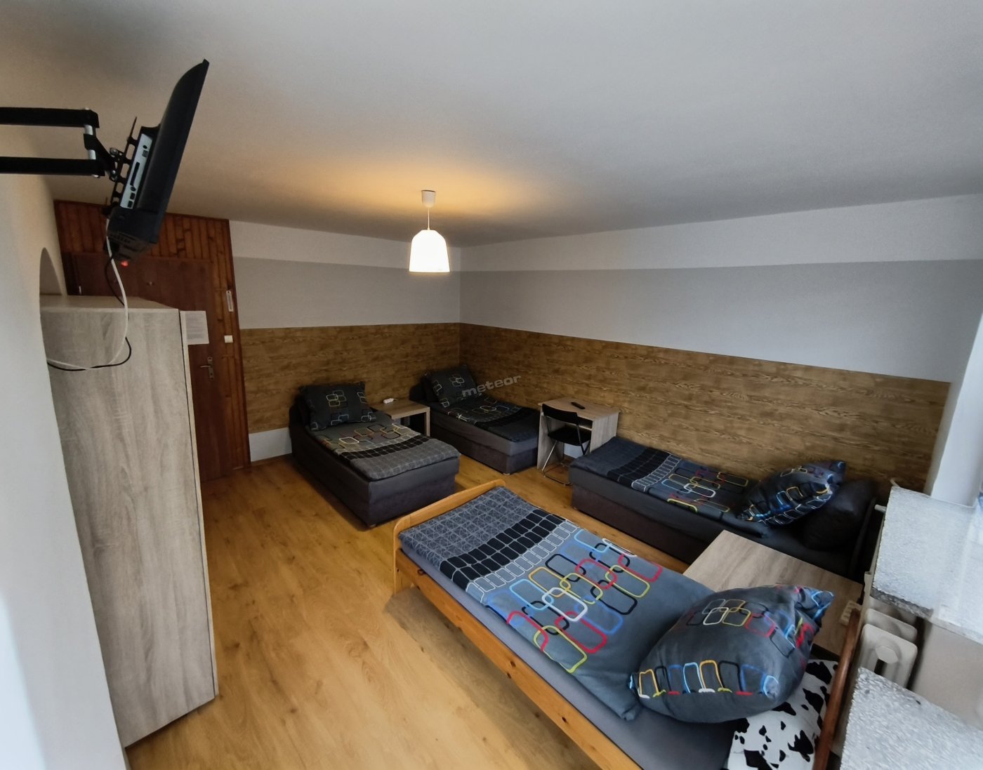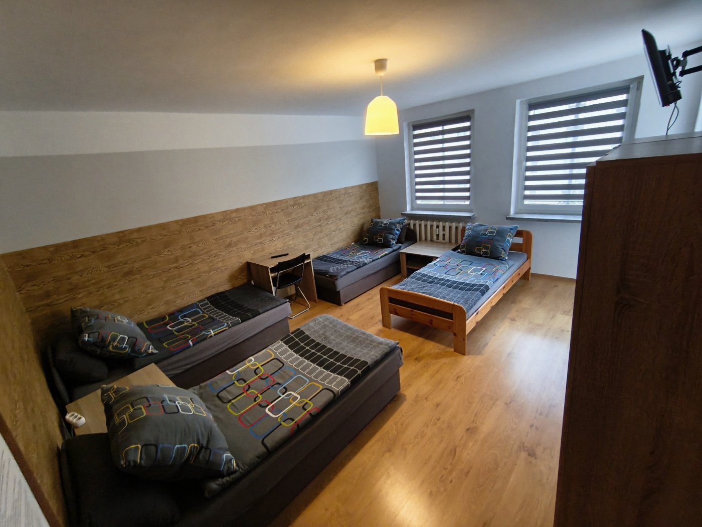 Oferujemy 2 pokoje z TV: jeden 2-osobowy i drugi 3-osobowy (możliwość dostawki).