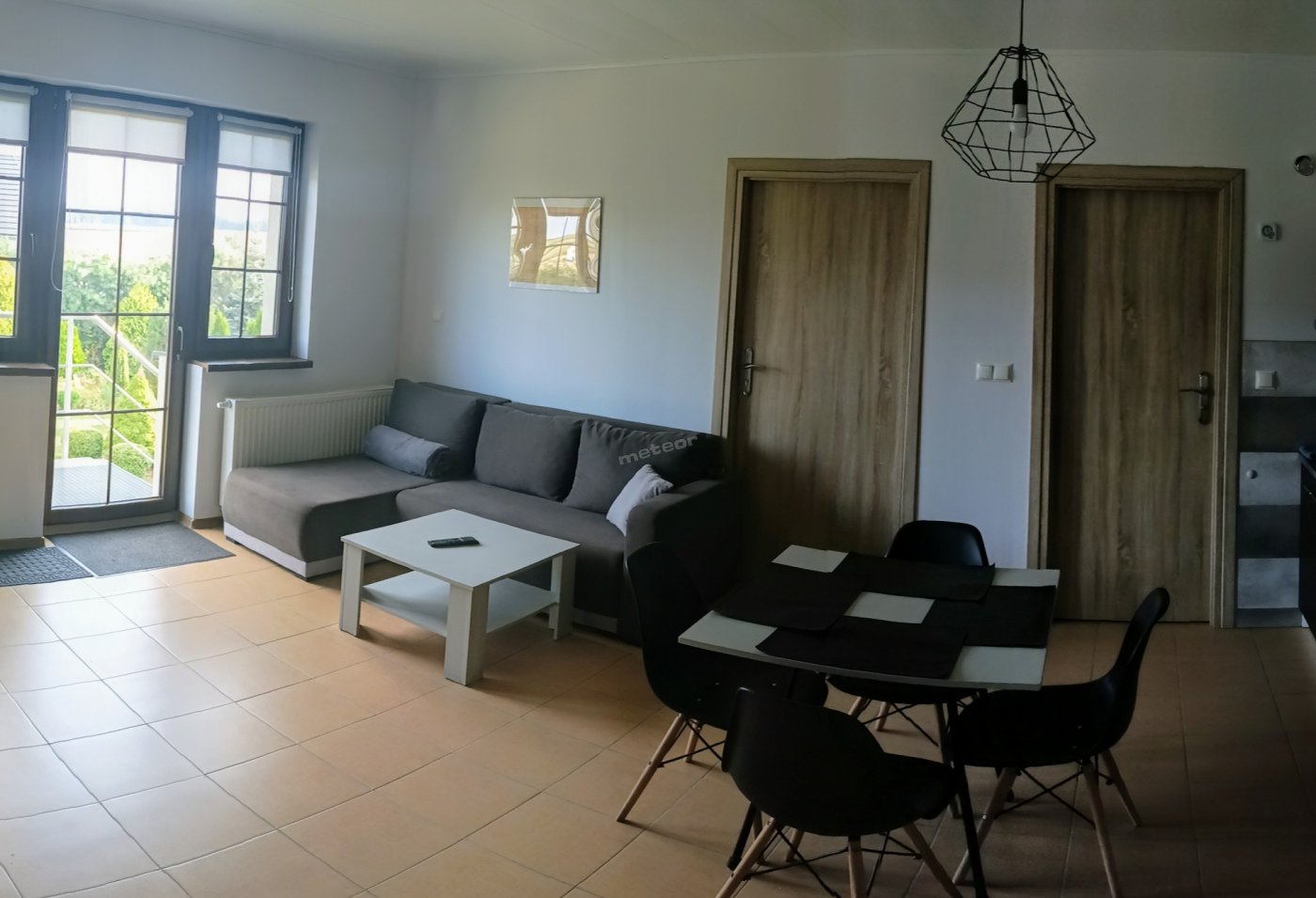 Do dyspozycji Gości niezależne studio z osobnym wejściem, a w nim ogólnodostępny salon z TV i aneksem kuchennym wyposażonym w lodówkę, płytę indukcyjną, czajnik, mikrofalówkę oraz zlewozmywak.